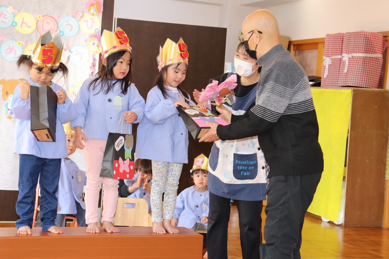 今月は、すみれ組さん2名、うめ組さん1名、まつ組さん3名(内1名は10月生まれのお友達です☺️)の計6名のお友達をお祝いしました🍰
