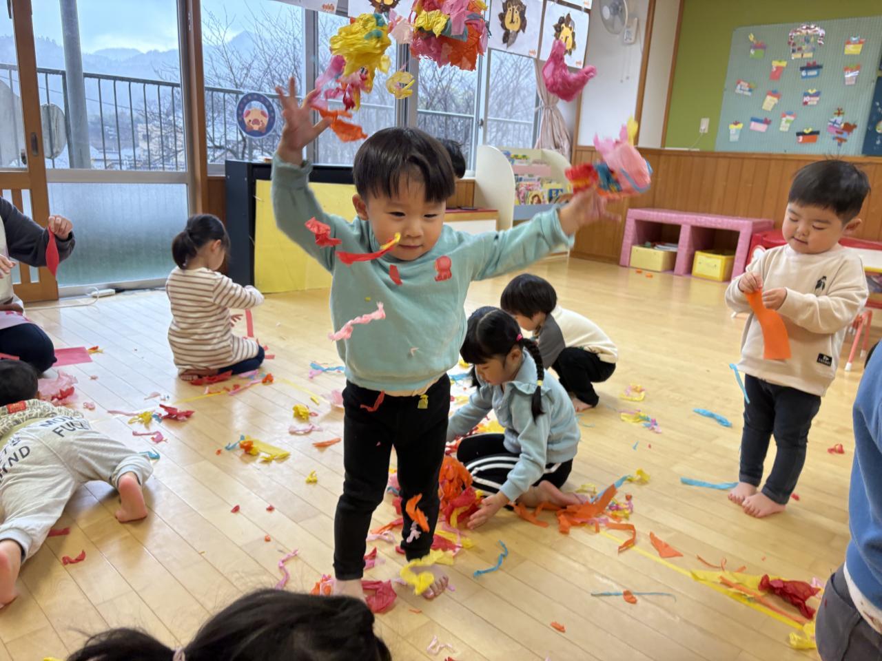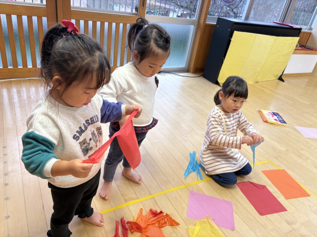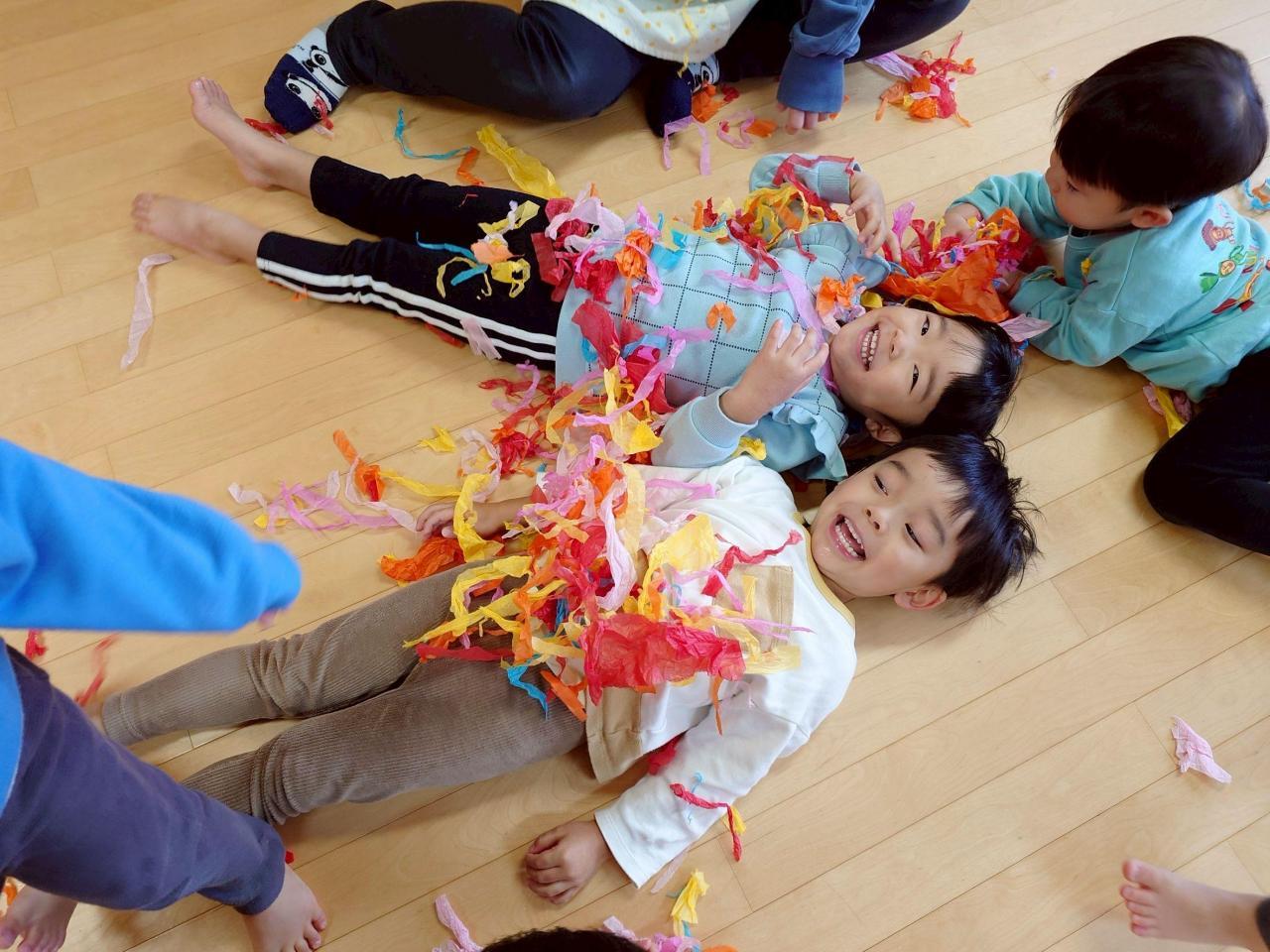 花紙遊びは、みんなやっている時から「たのし〜い」と言いながら時間いっぱいまで遊びました☺️