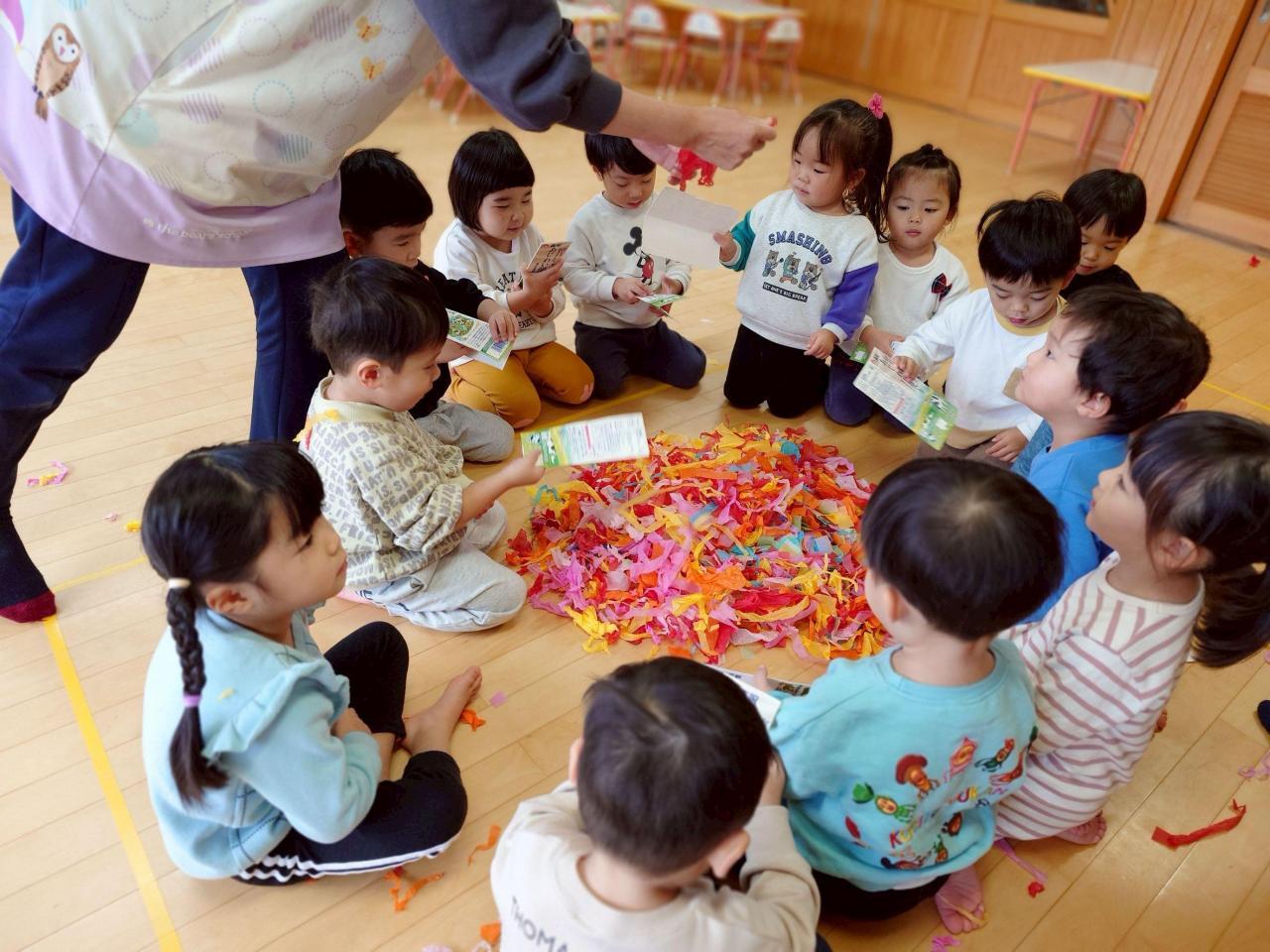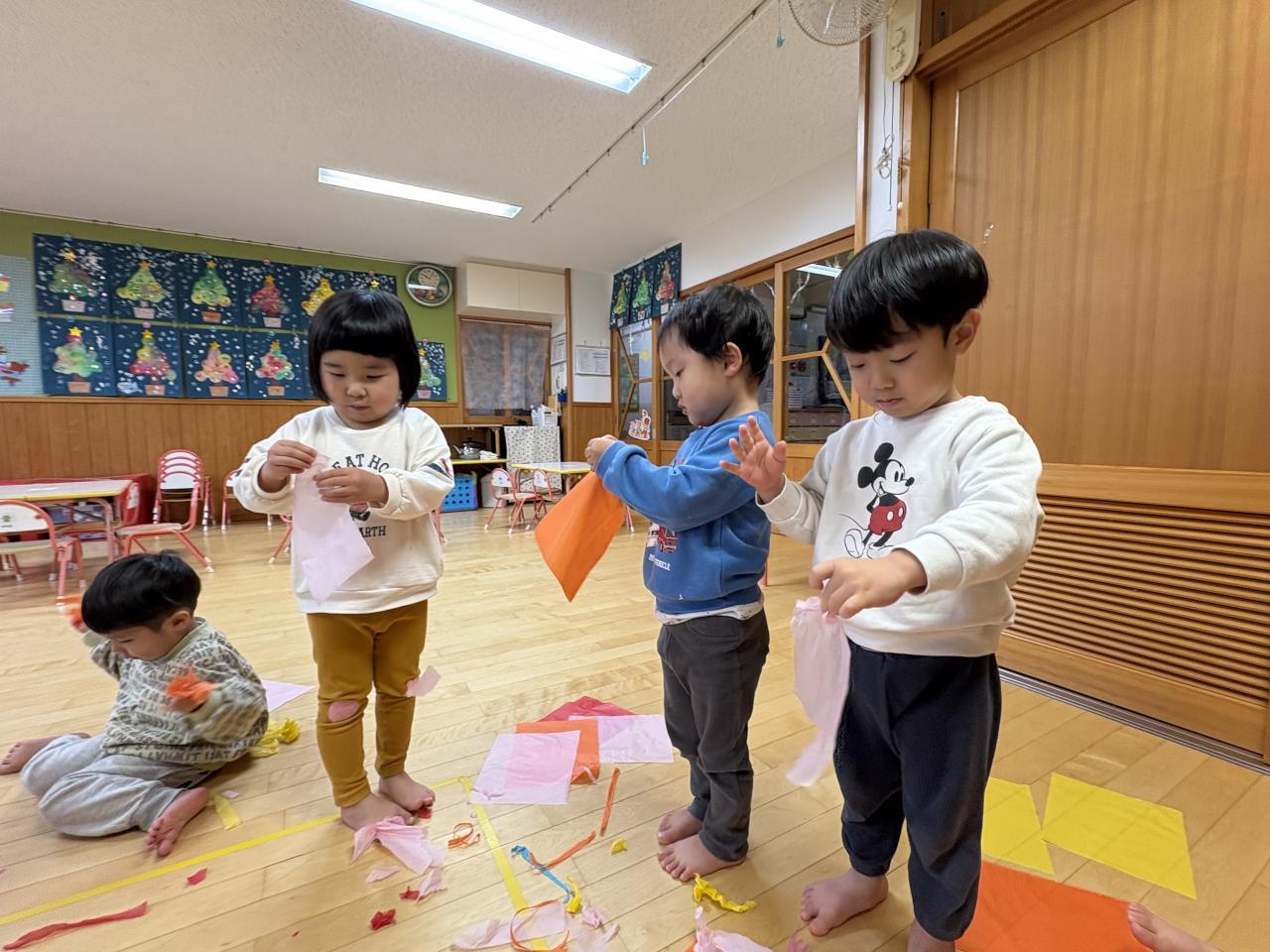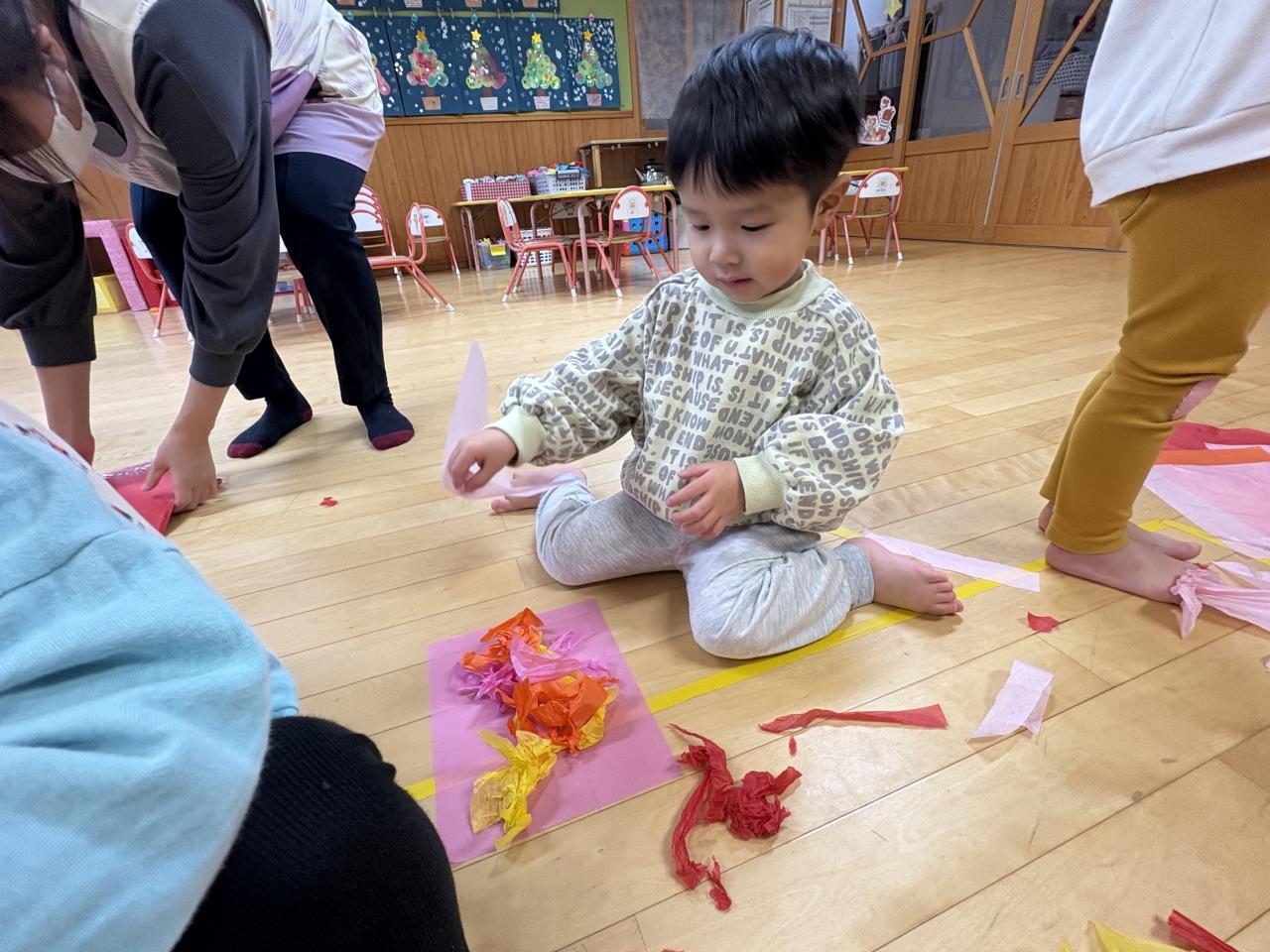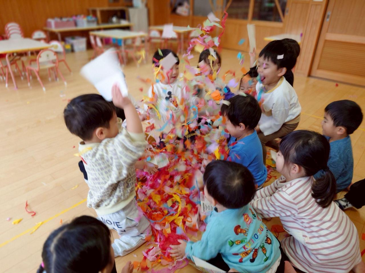 花紙遊びは、みんなやっている時から「たのし〜い」と言いながら時間いっぱいまで遊びました☺️