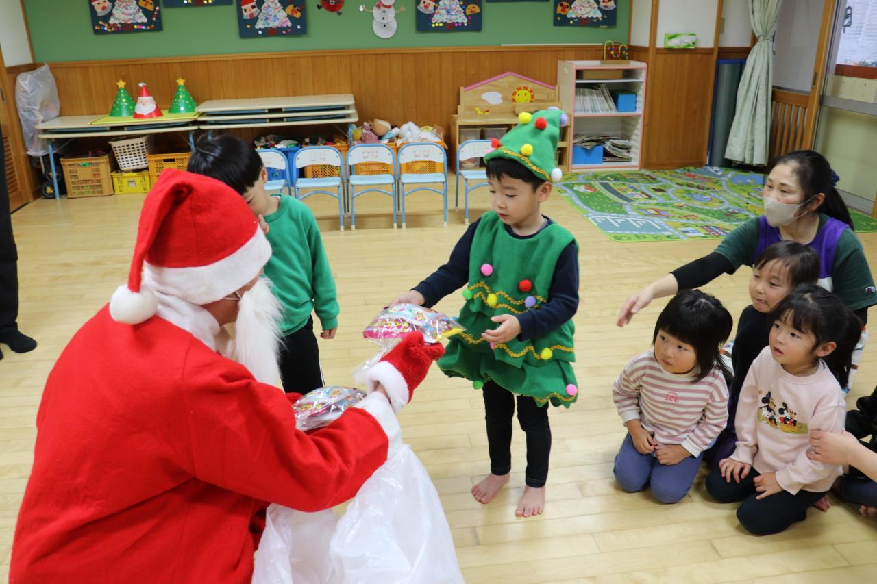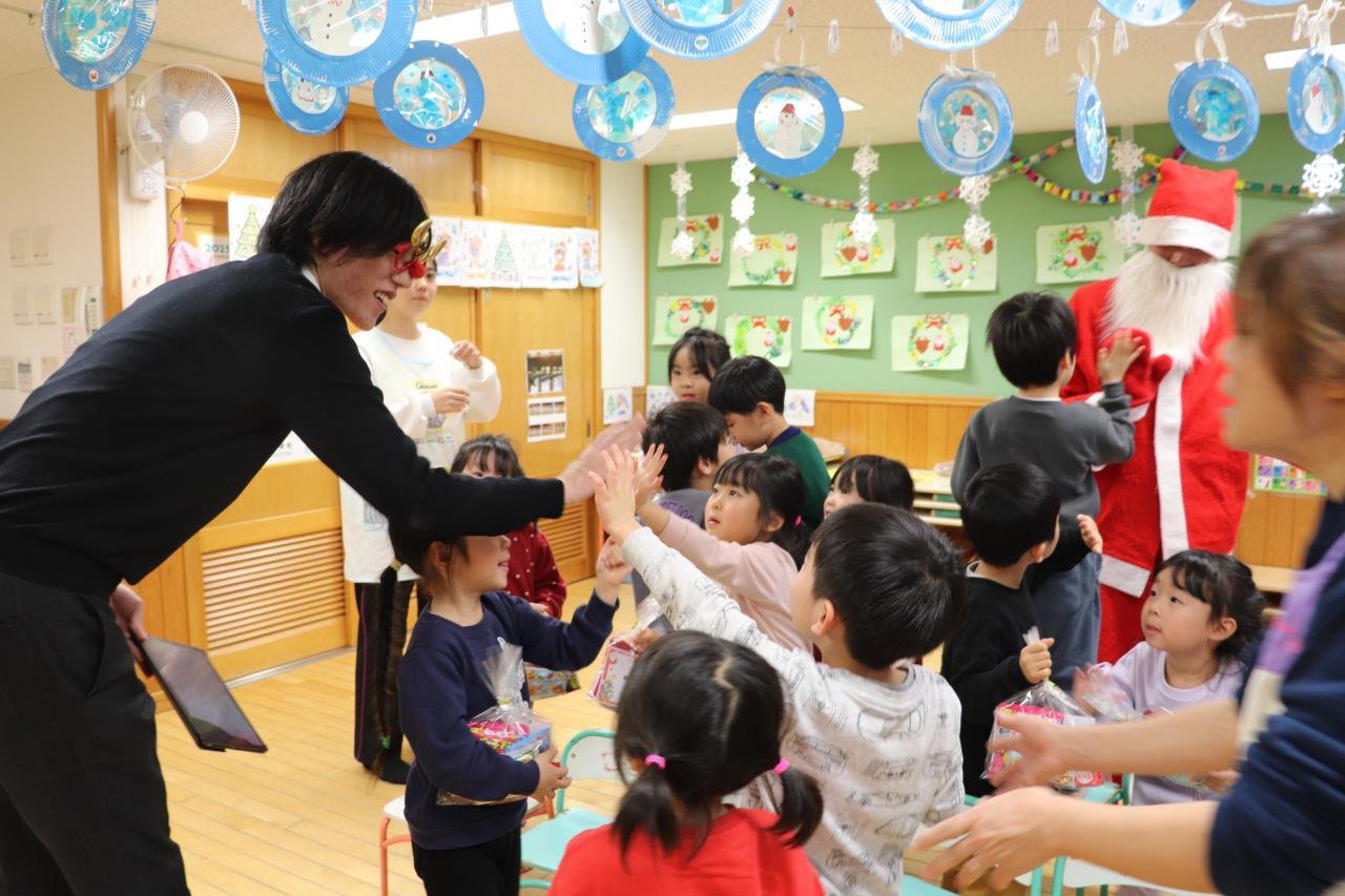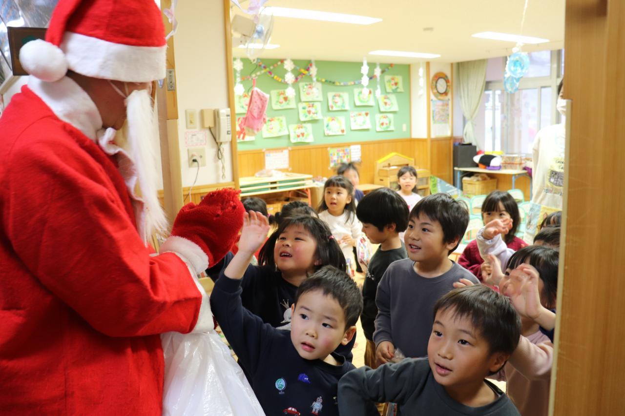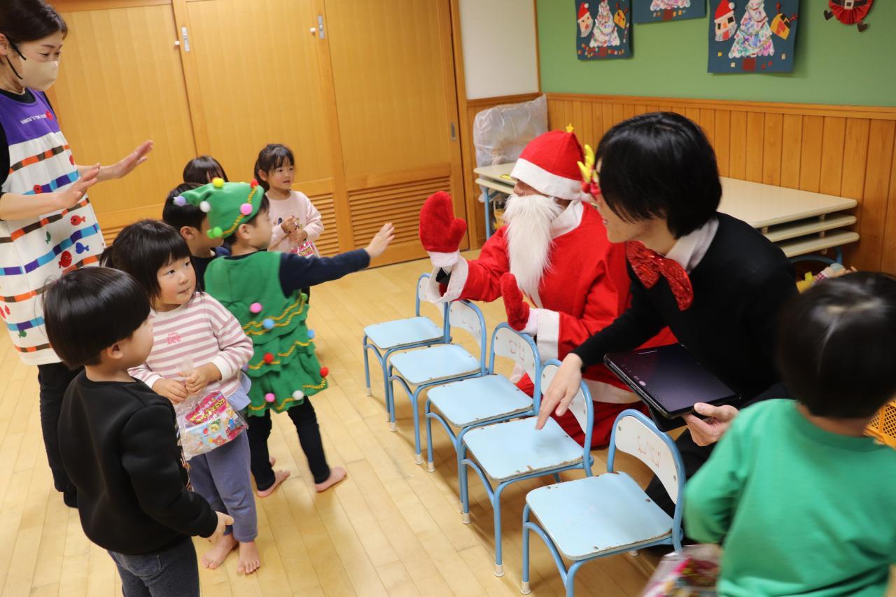 サンタさんとトナカイさんがお部屋に入ってきてくれると、とても嬉しそうな子どもたち!