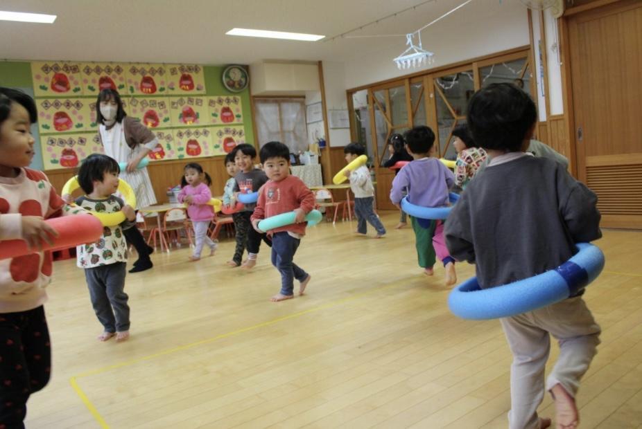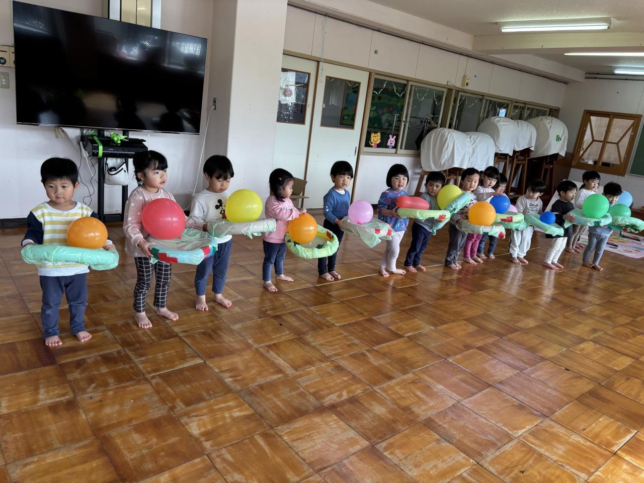 1人ひとつずつ渡すと、電車ごっこが始まりました🚃