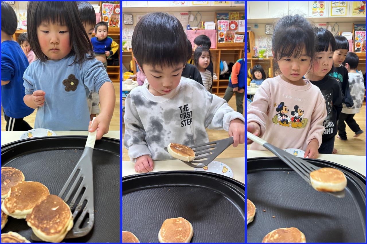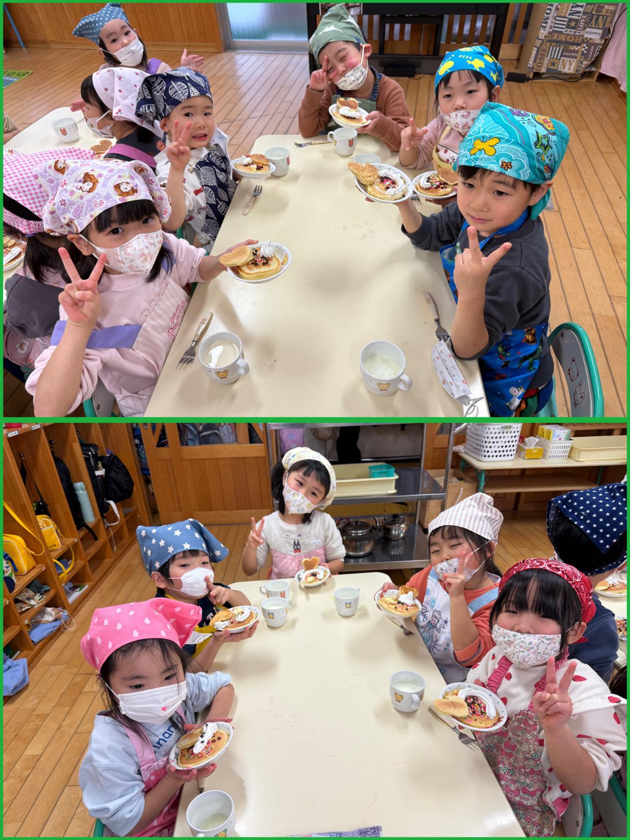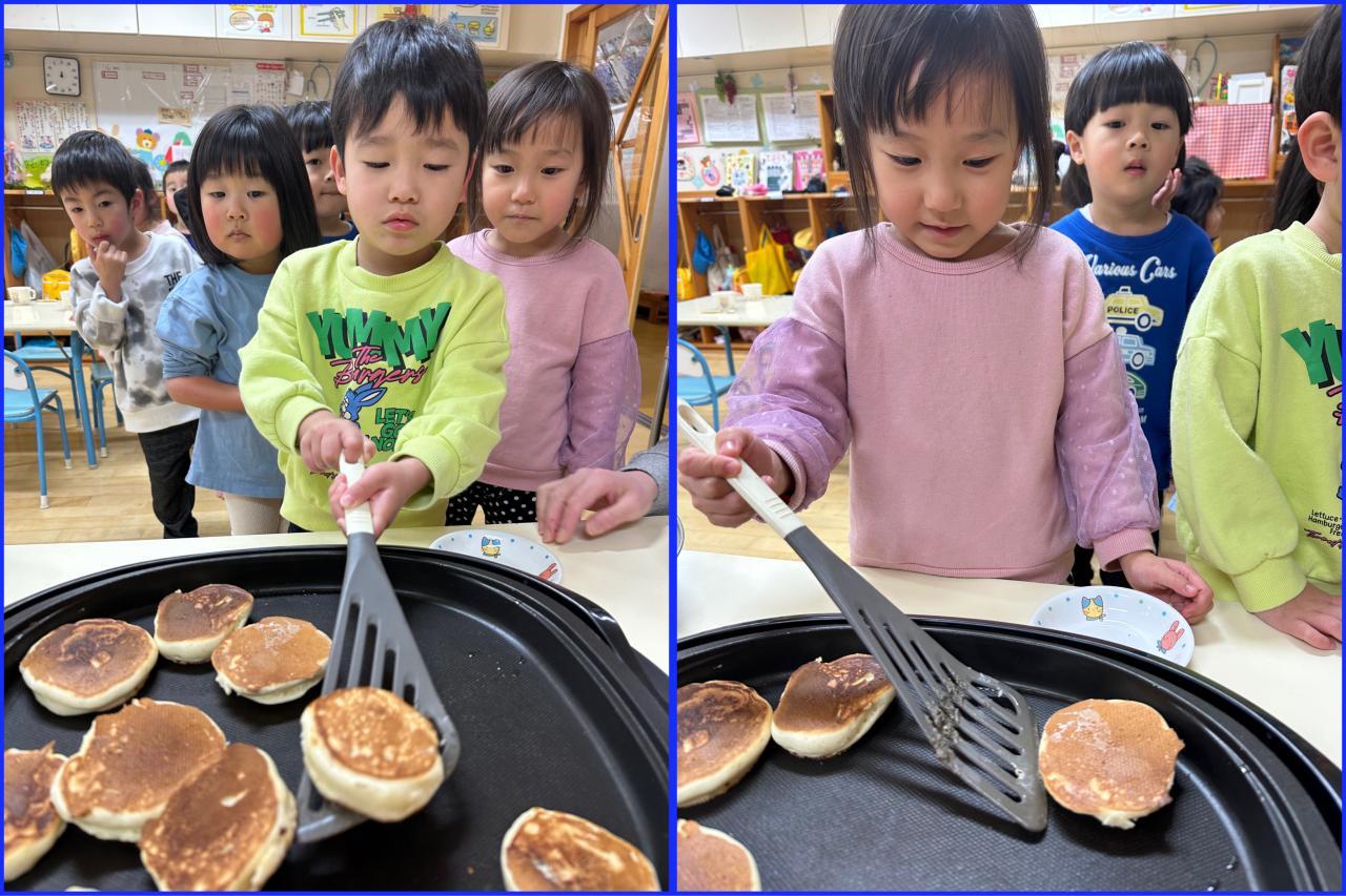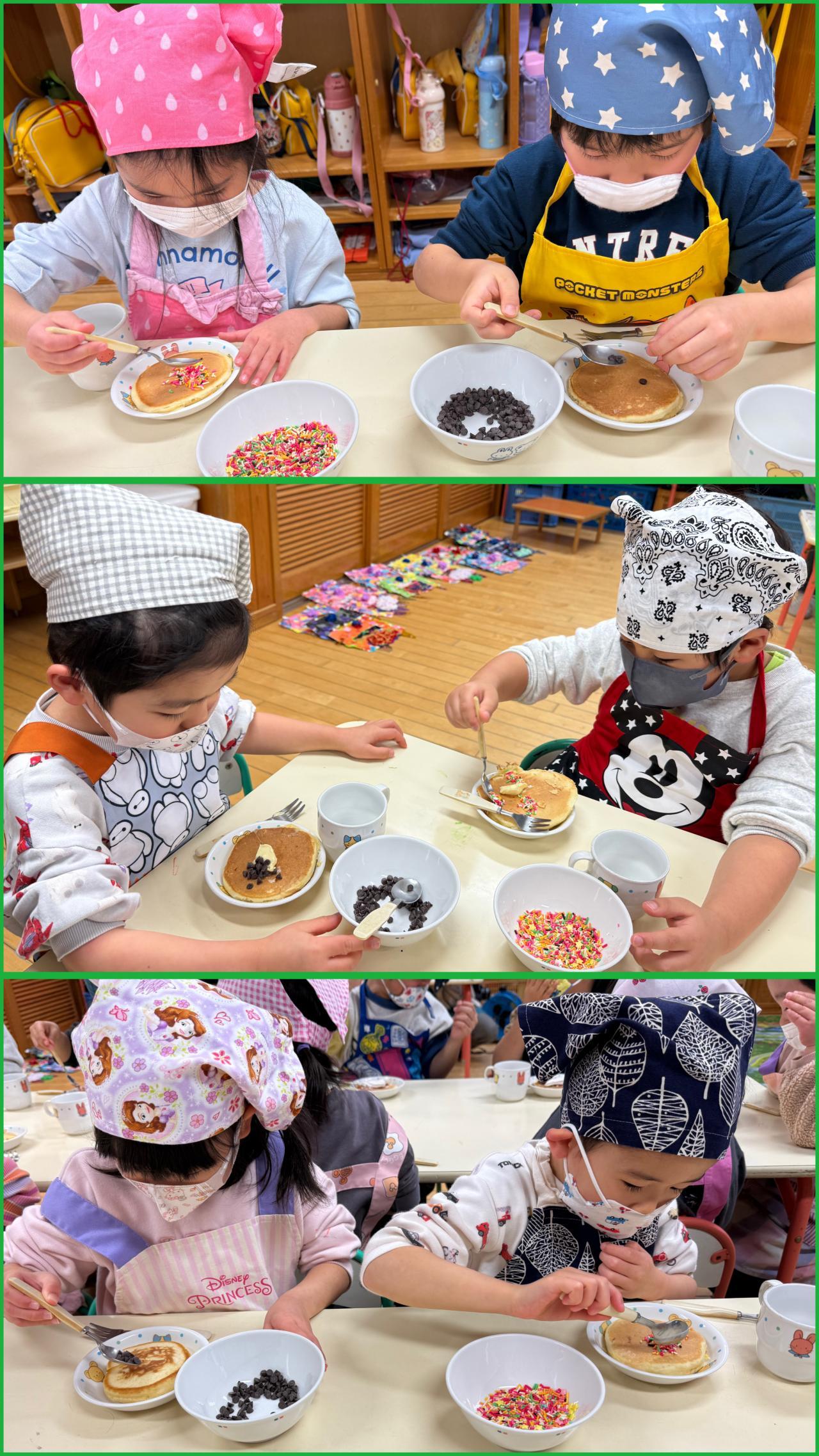 まつ組さんもたけ組さんも、朝からホットケーキ作りを楽しみにしていました🥰