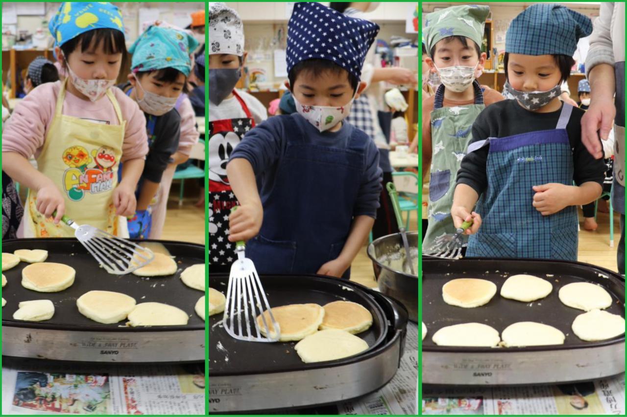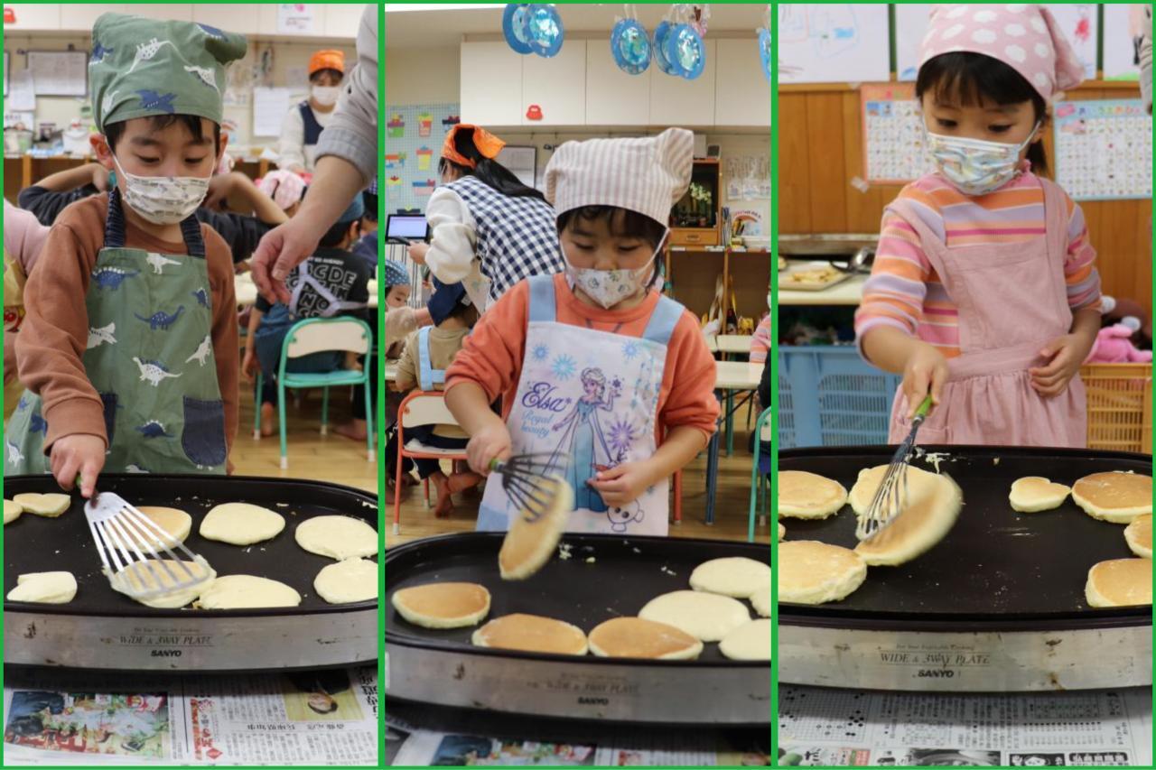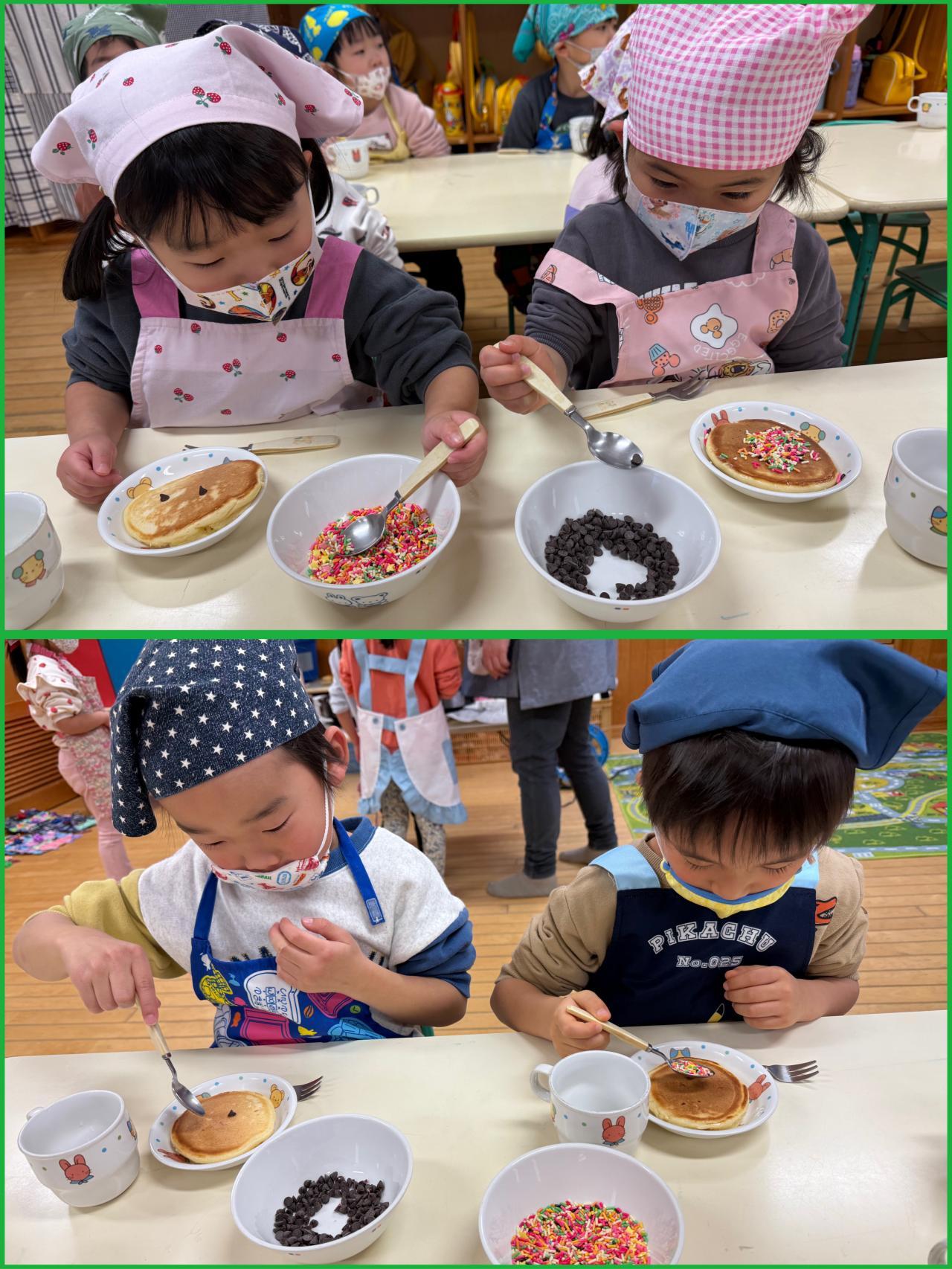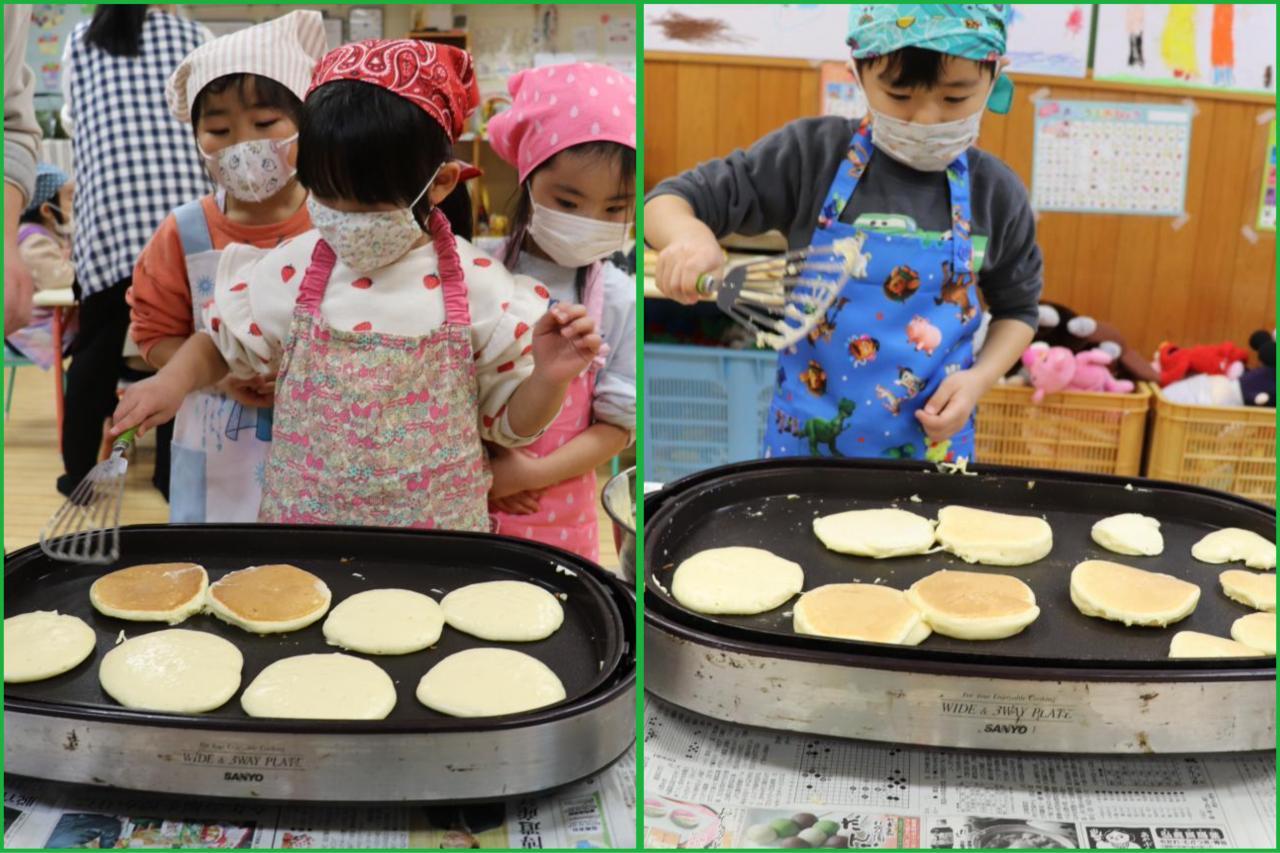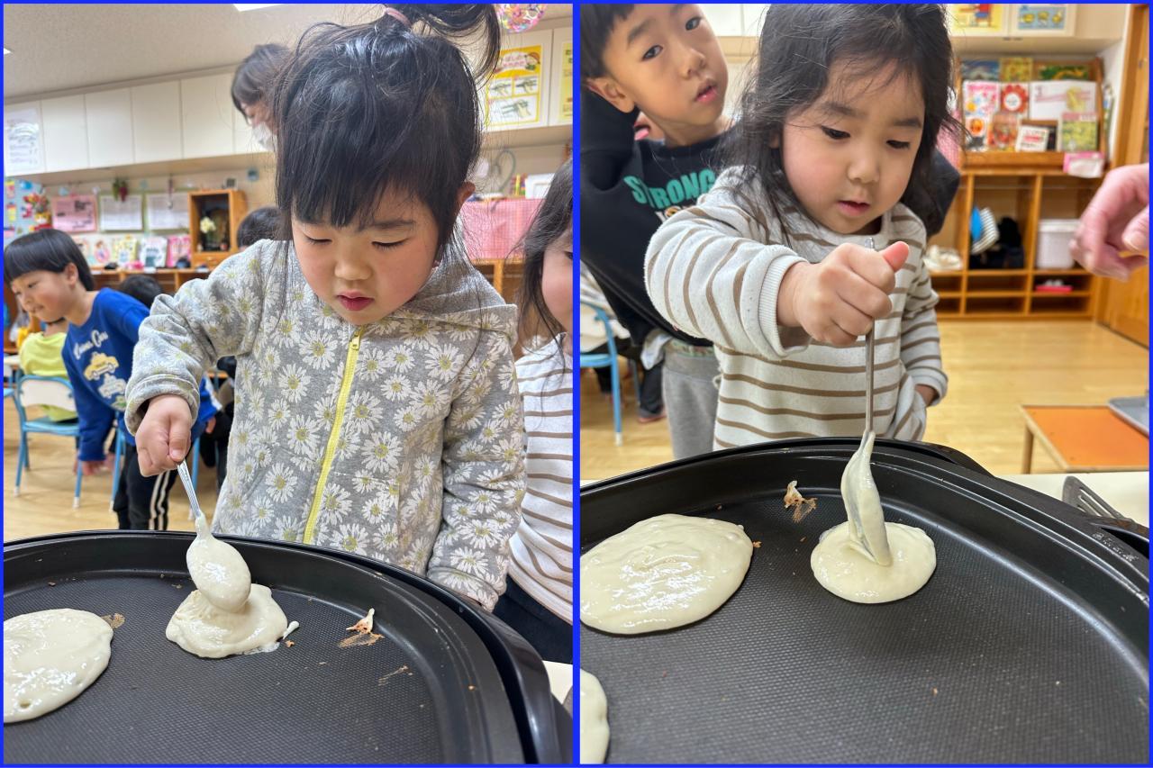 まつ組さんもたけ組さんも、朝からホットケーキ作りを楽しみにしていました🥰
