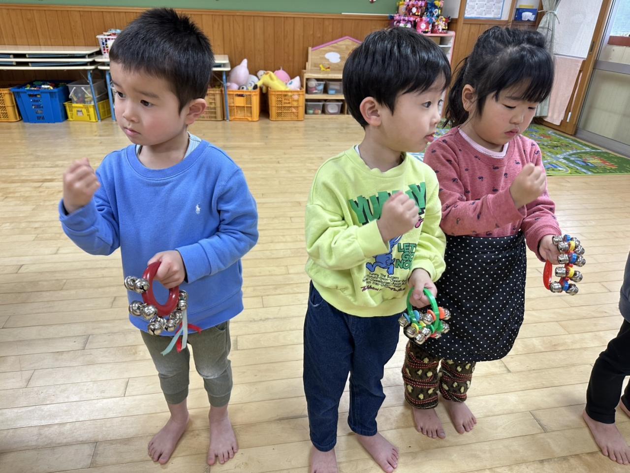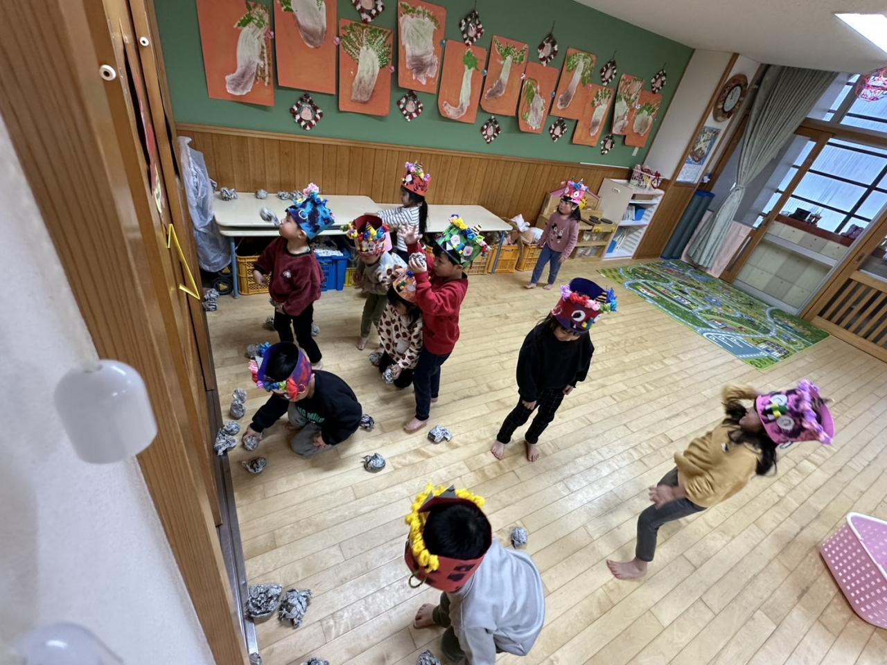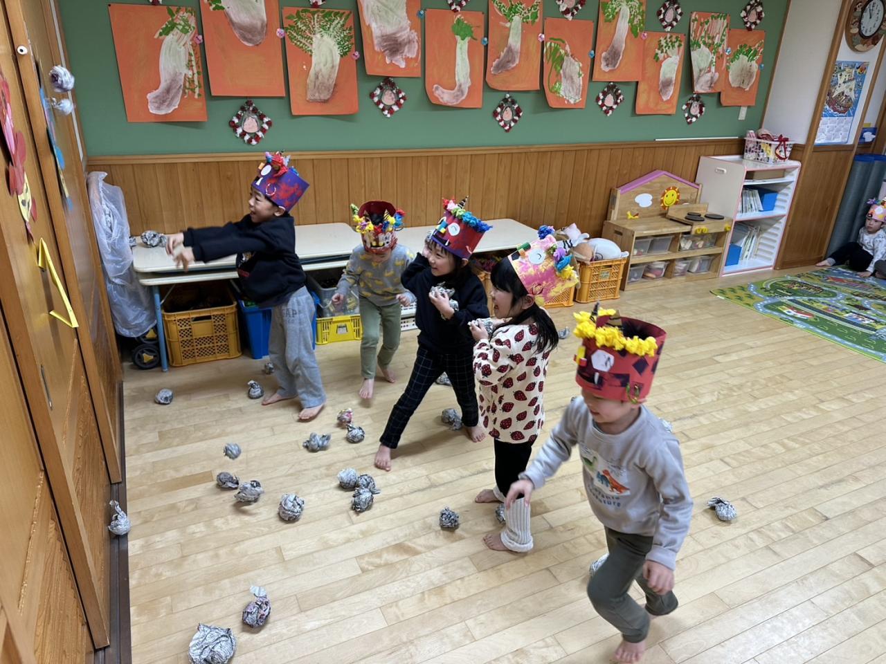 今週は節分に向けて豆まきごっこをしたり、楽器に触れてリズム打ちしたり、運動遊びを楽しみました!