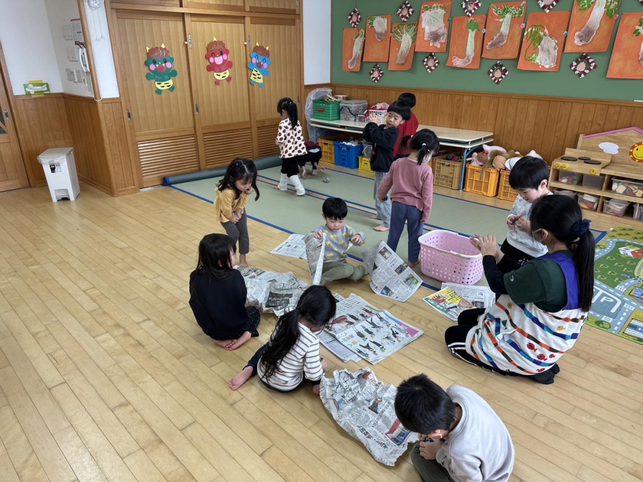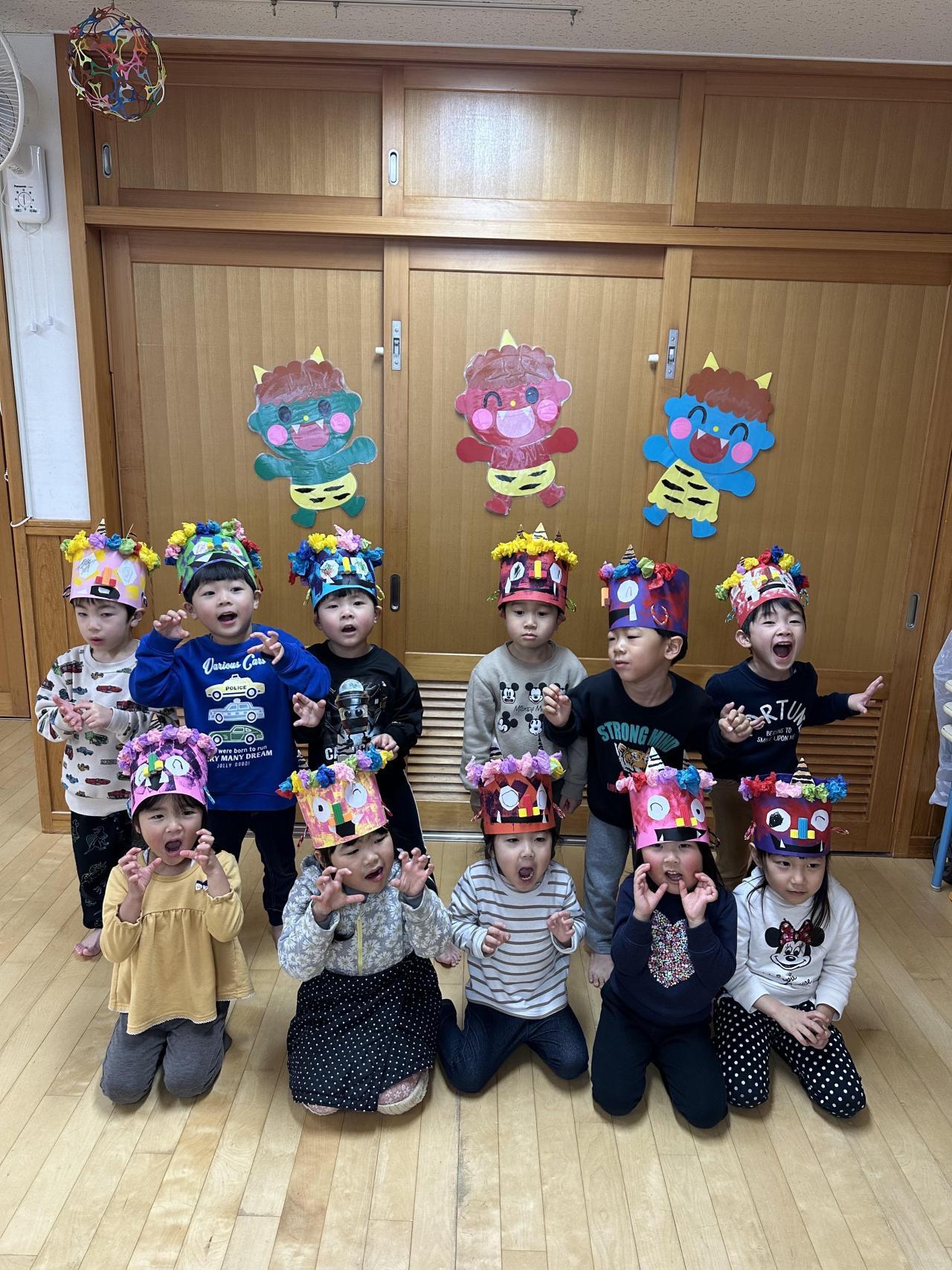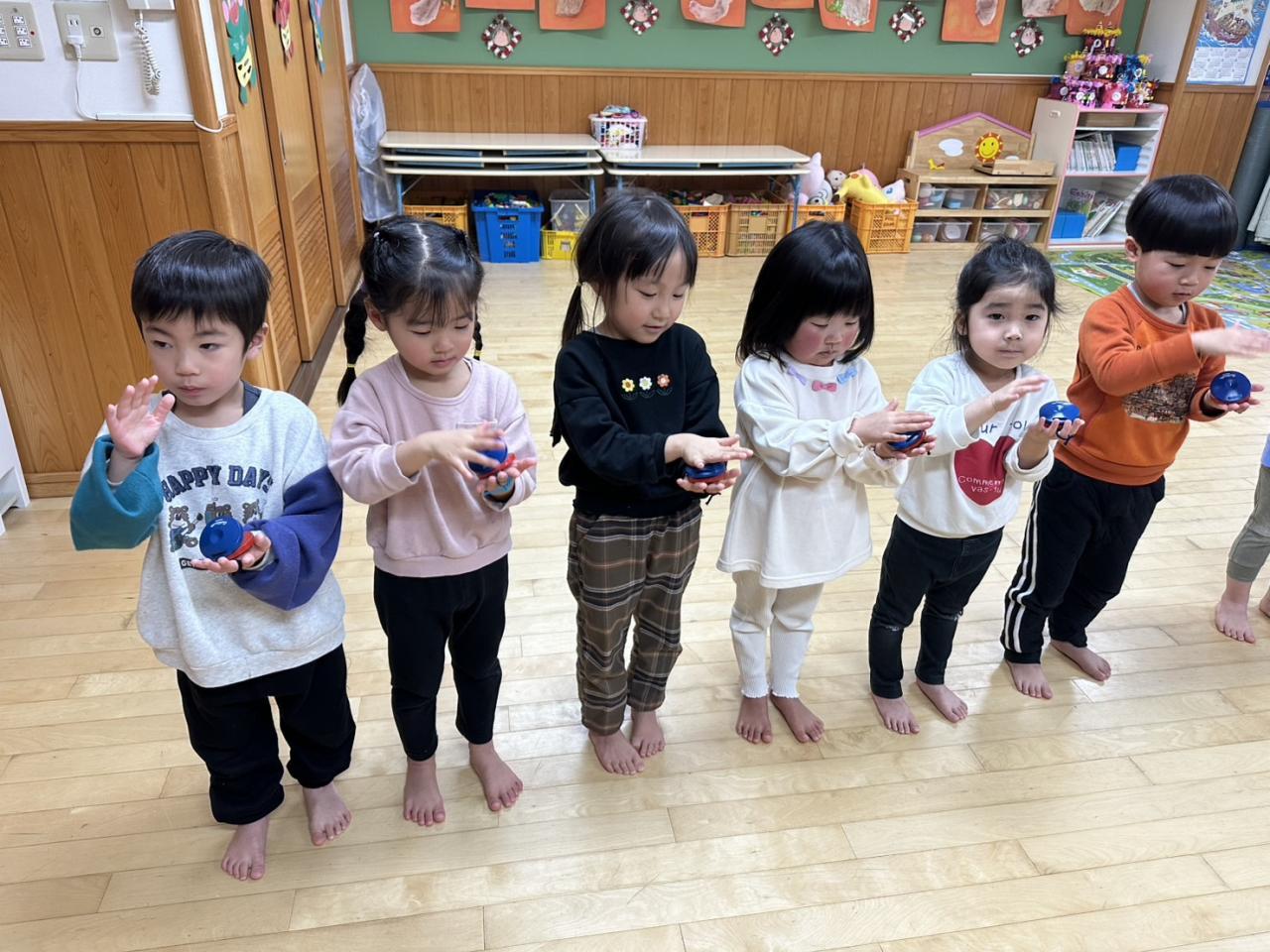 今週は節分に向けて豆まきごっこをしたり、楽器に触れてリズム打ちしたり、運動遊びを楽しみました!