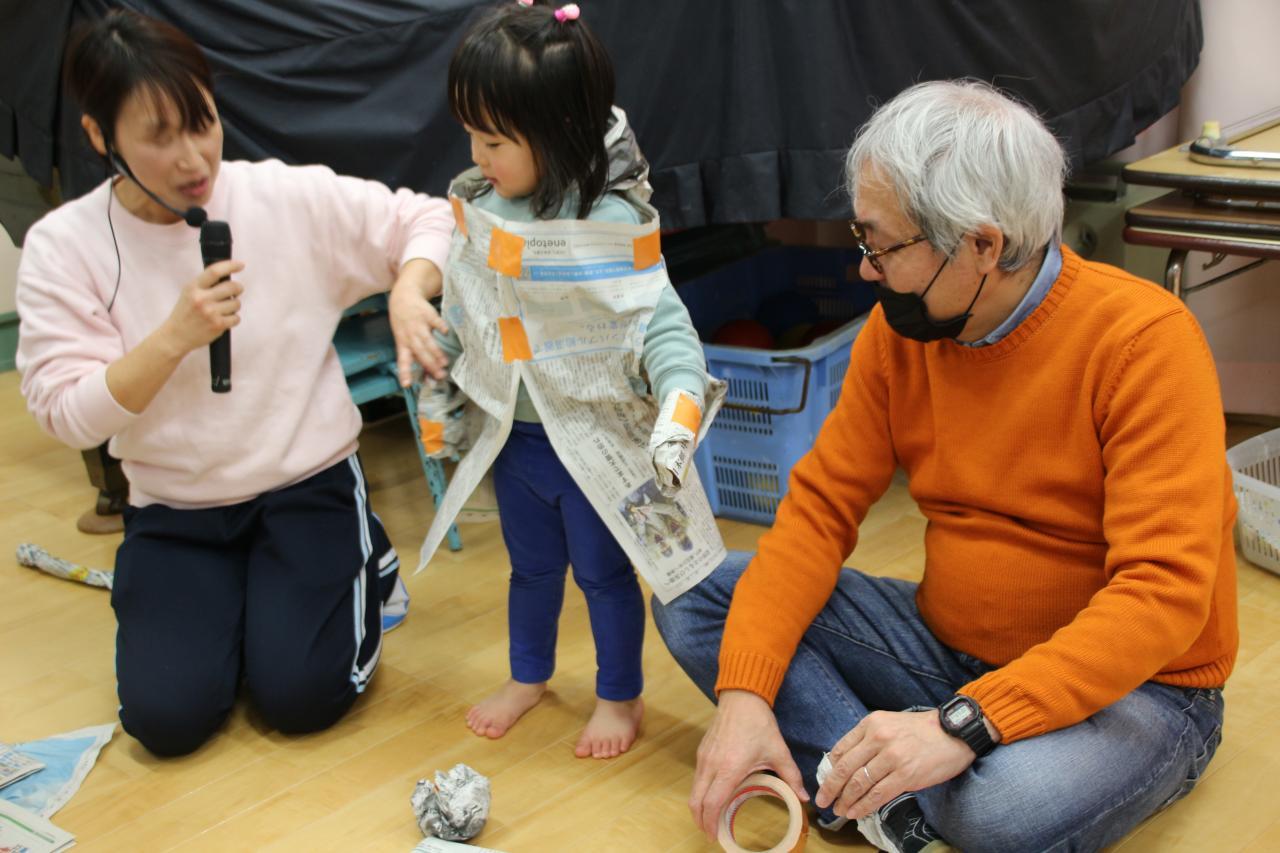 傘や布団に見立てたり、アンパンマンになって走り回ったり、
