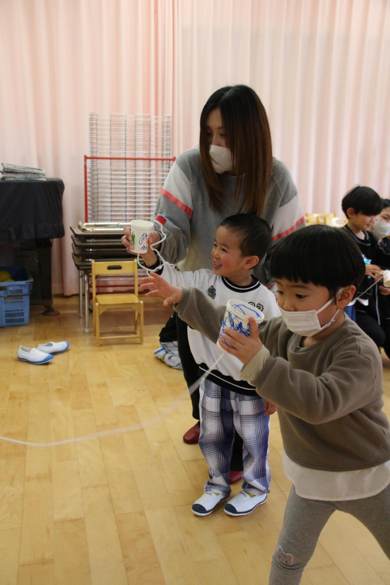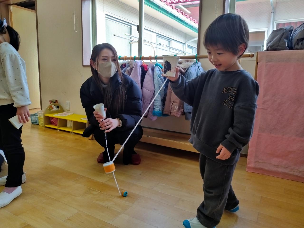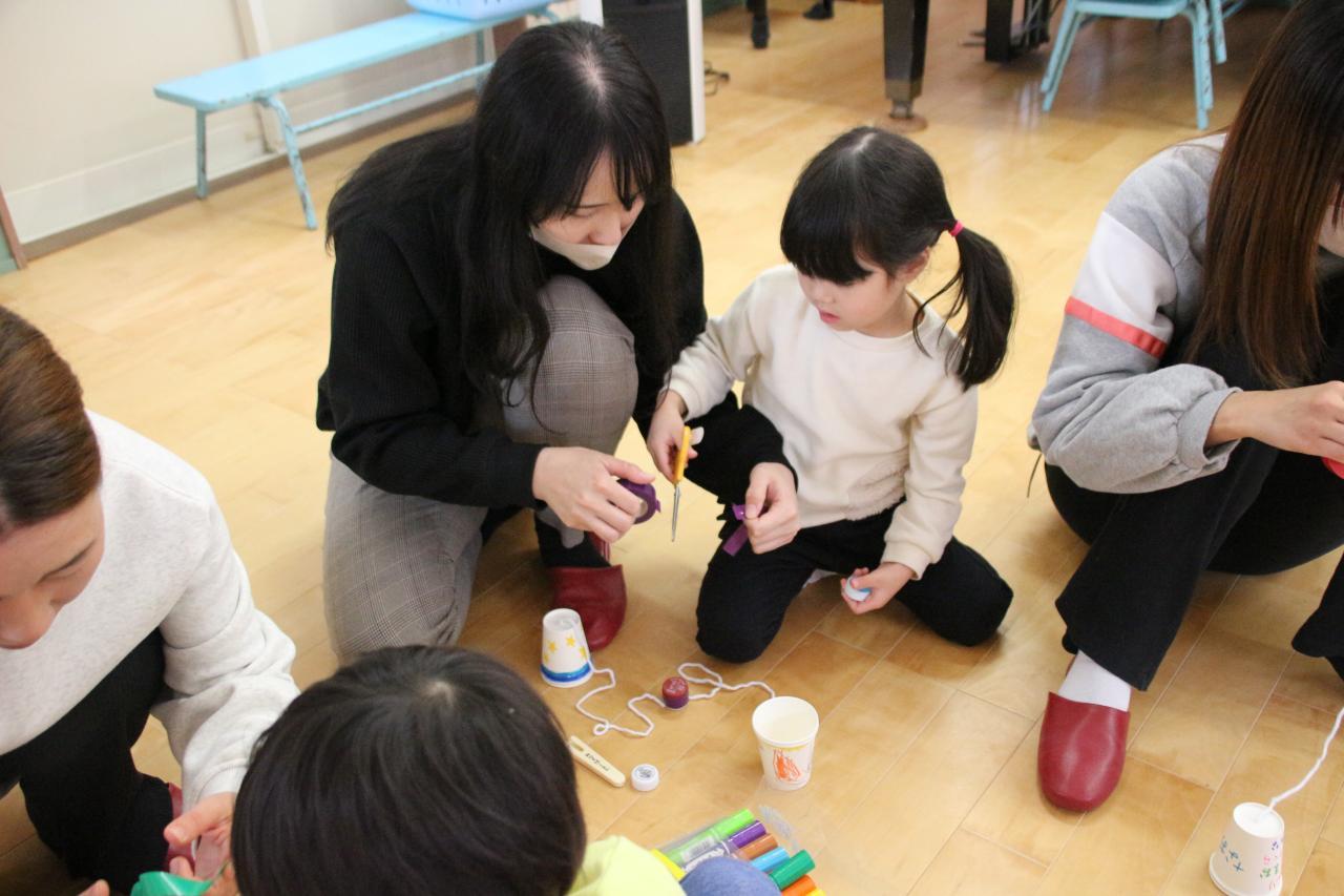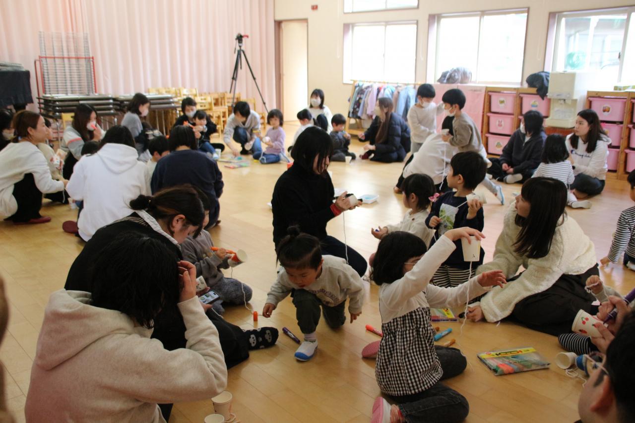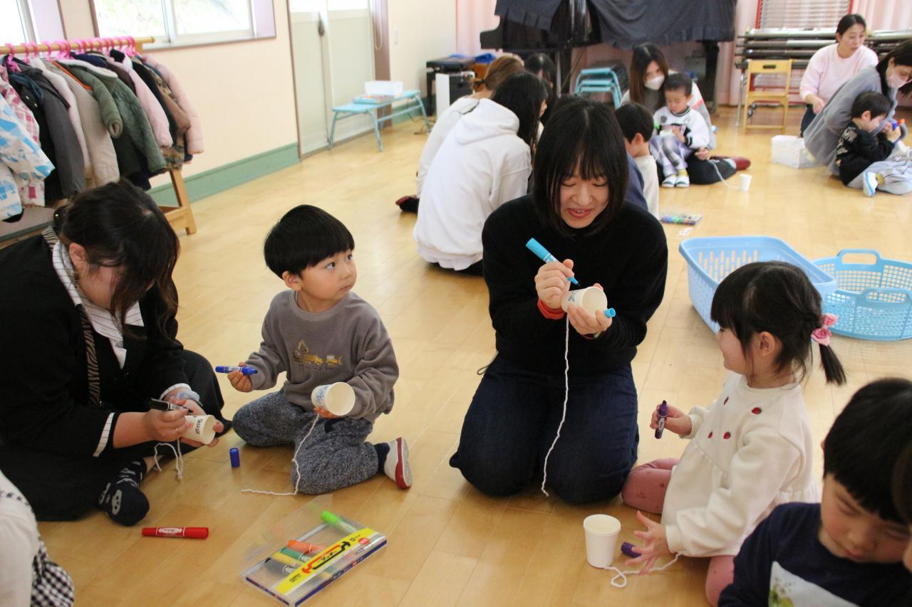 今日は親子で『紙コップのけん玉づくり』に大盛り上がり!!