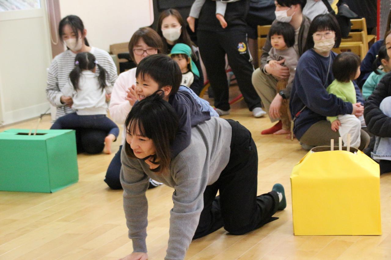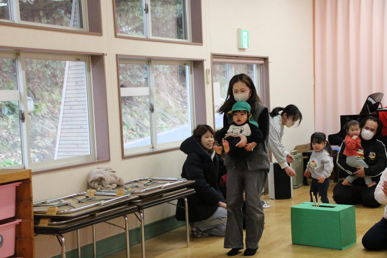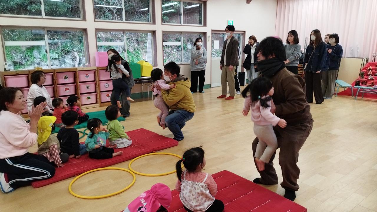 お遊戯室にて、 ”親子でふれあいゲームあそび”で
