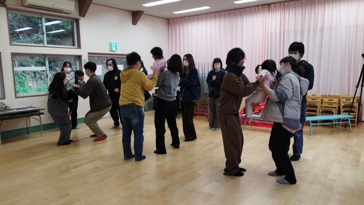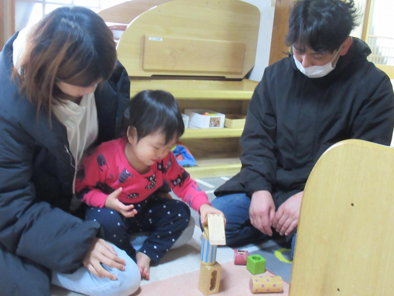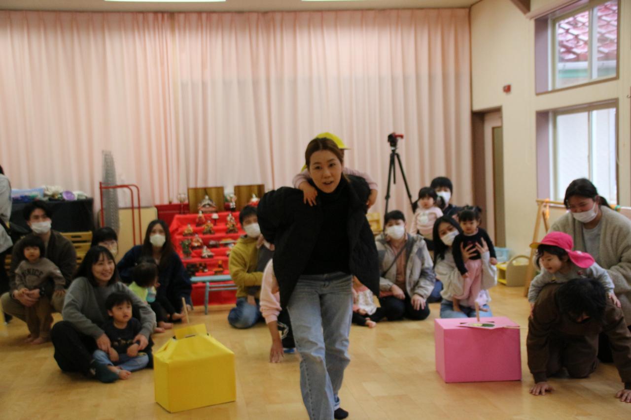 お遊戯室にて、 ”親子でふれあいゲームあそび”で