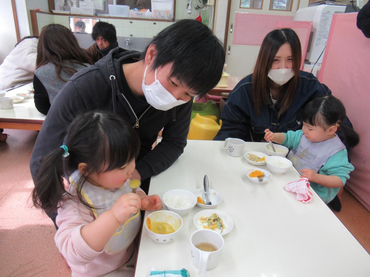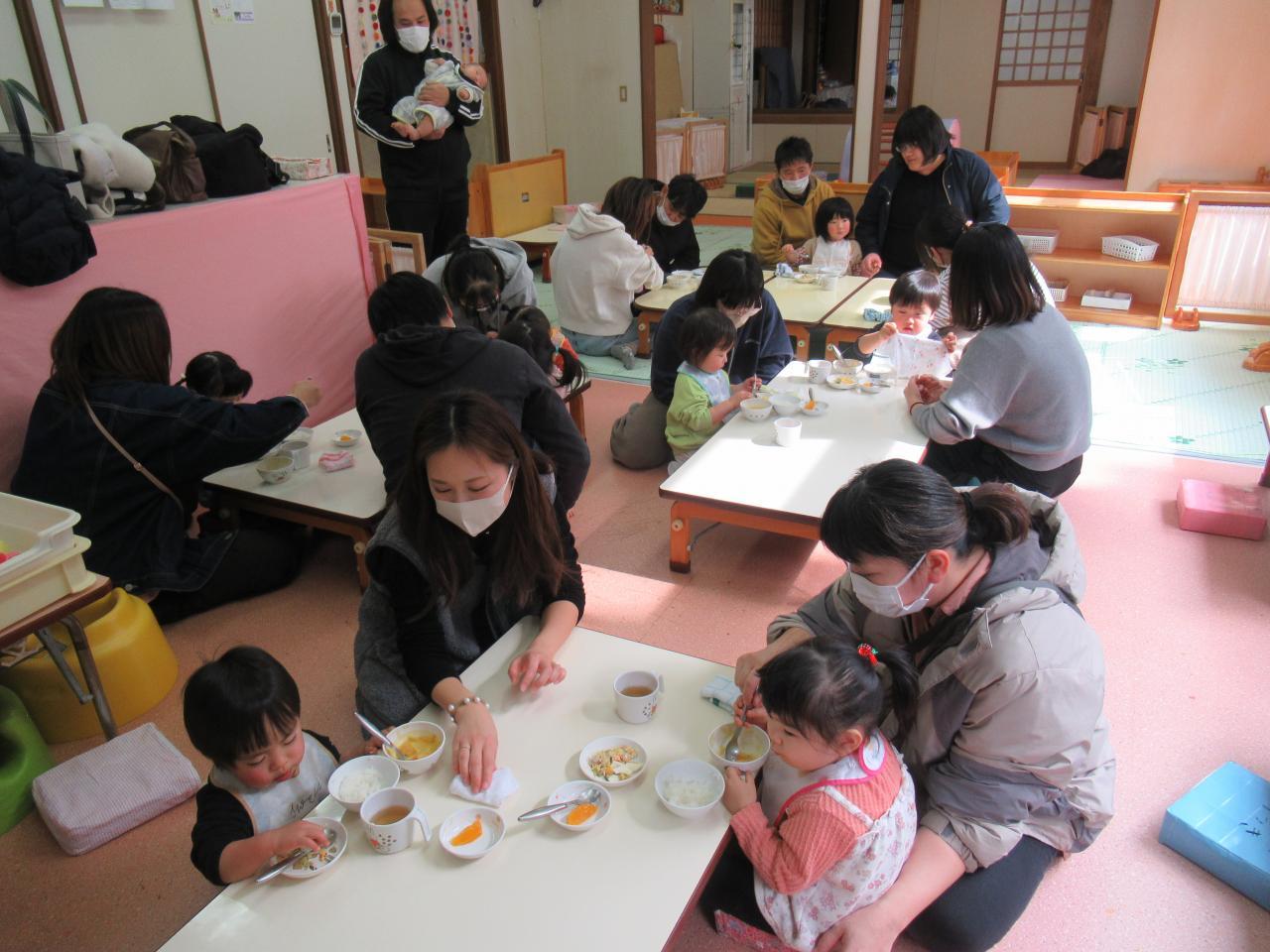 お父さん、お母さんと一緒にひよこ組のお部屋で