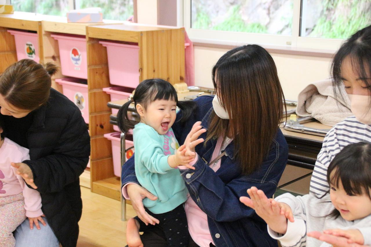 まずは『ひっつき もっつき』のふれあいあそびを楽しんだ後で