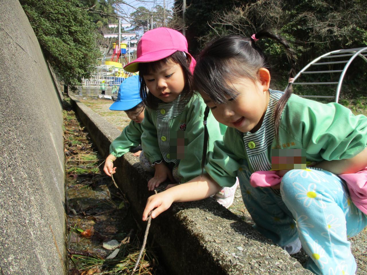 「カニさんおるかな~?」と友だちと溝を覗きこんだり、