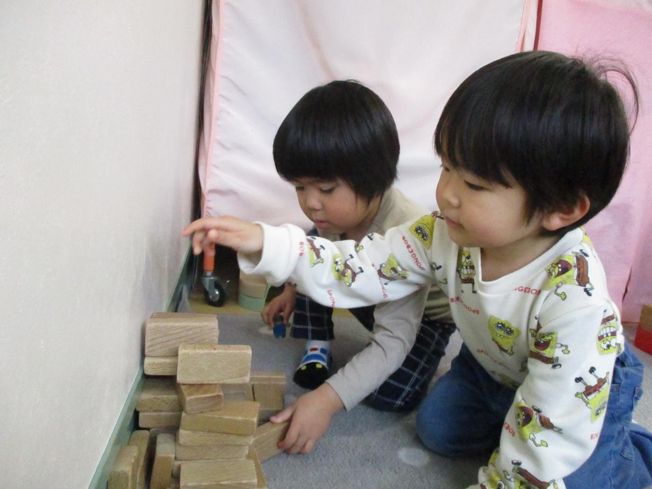 お部屋で、戸外で、元気いっぱいに遊ぶあか組さん😆