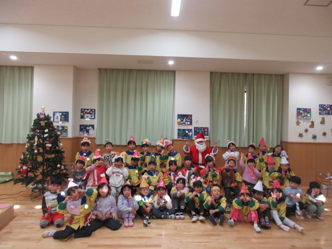 ![]() きりん1組とサンタさん | ![]() きりん2組とサンタさん |
