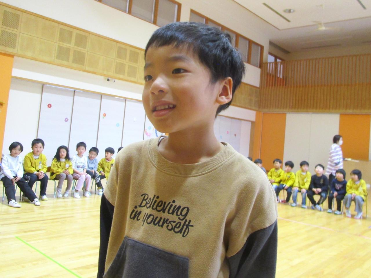 とてもやさしいこに そだってくれてありがとう。おてつだいもよくしてくれて、さいきんは、おりょうりも いっしょにしてくれるね☺(^^)/ このまえつくった「とんじる」すごくおいしかったね! おともだちと はなしたことや、あそんだことをたくさんおはなししてくれて とってもうれしいよ。だいすきなせんせいや、おともだちができて よかったね💓 スポーツがだいすきなあなた。これからもいろんなことにちょうせんして・・・