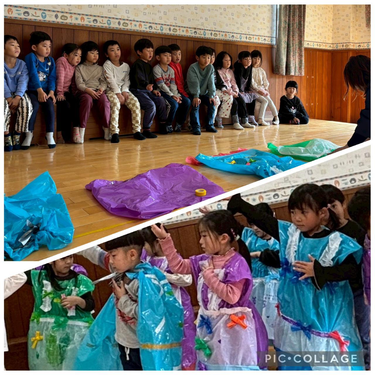 今日は発表会の劇の衣装作りをしました☆
