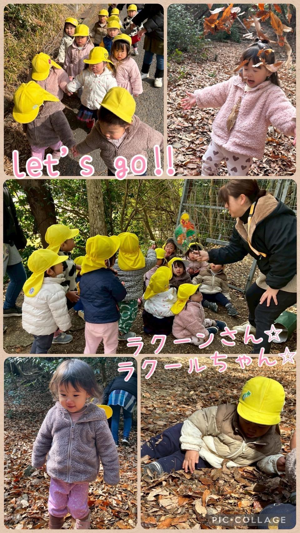 「ラクーンさんとラクールちゃんがいるんだって!」と伝えると、「いく!」「みにいく!」と大喜びの子どもたち。出発前から期待でいっぱいの様子でした。