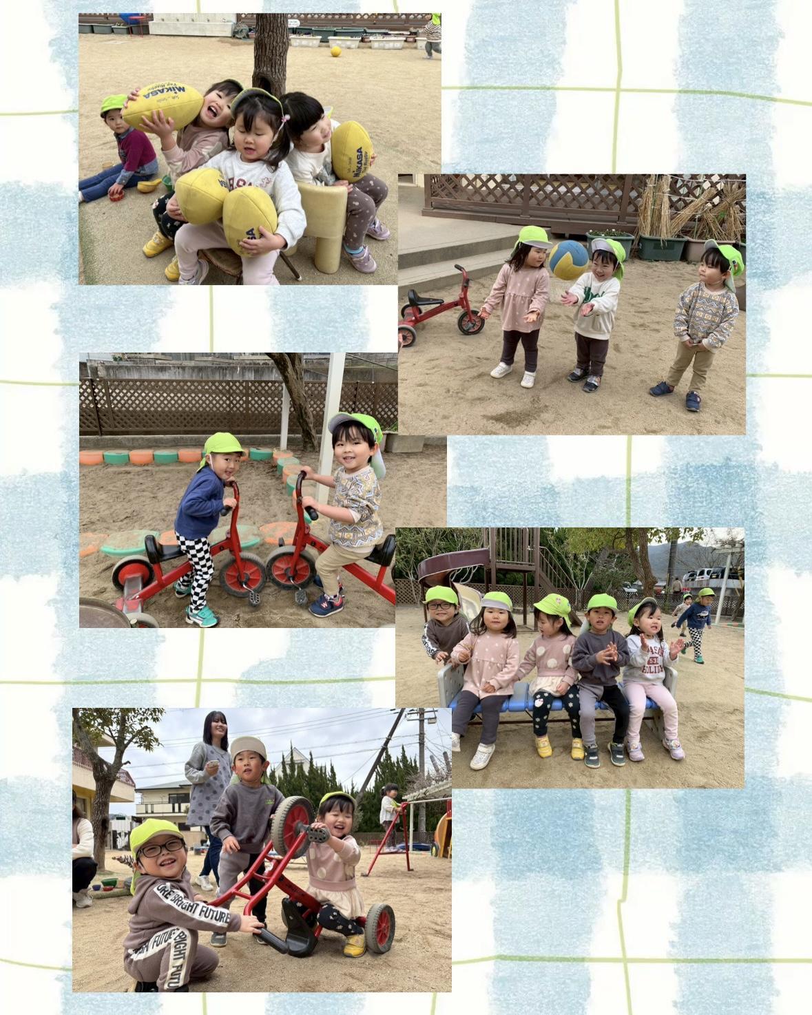 そのあとは好きな遊びの時間!ラグビーボールを赤ちゃんに見立てて優しく抱っこし、「よしよし〜」とお世話をしたり、お医者さんになりきったり♡ キャッチボールに挑戦する子もいましたよ!三輪車やブランコなど、それぞれが好きな遊びを見つけて楽しんでいました⟡.·たくさん体を動かしたあとは、ランチももりもり!ぴかぴか完食のさくらさんでした(^^)