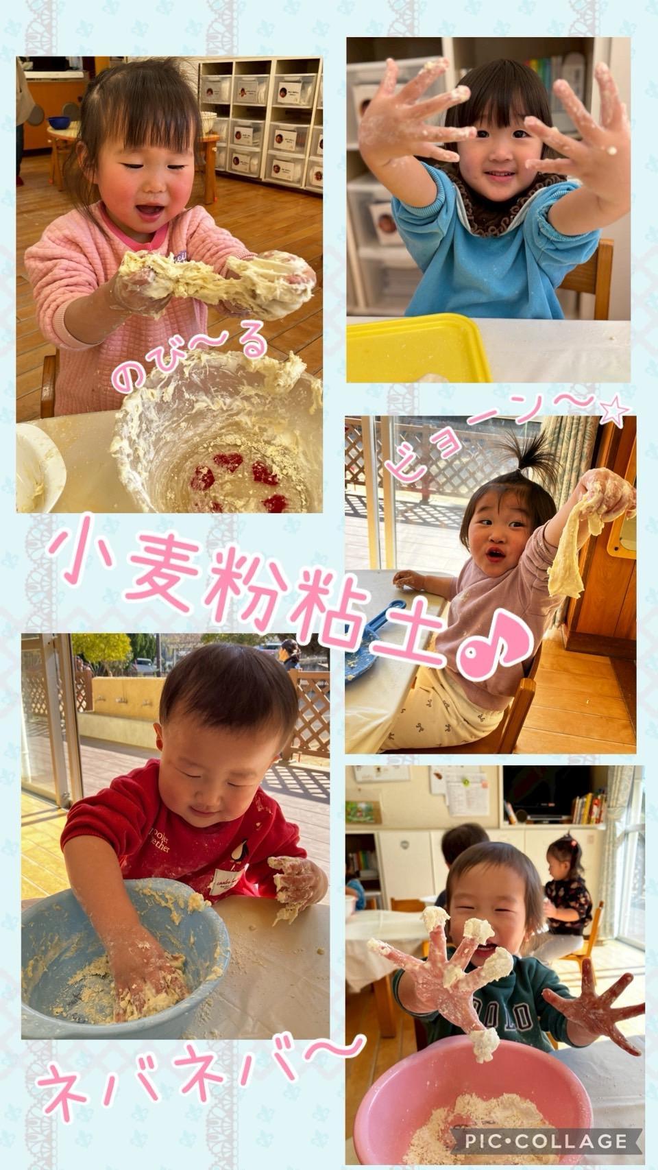 今日は小麦粉粘土遊びをしました。