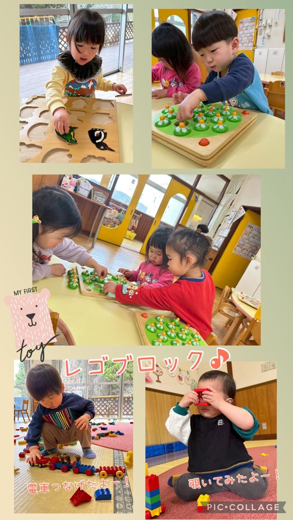 型はめでは丸や三角、四角の形をじっと見つめ、「ここかな?」「ちがう?」と何度も向きを変えながら挑戦する姿が見られましたよ☺︎