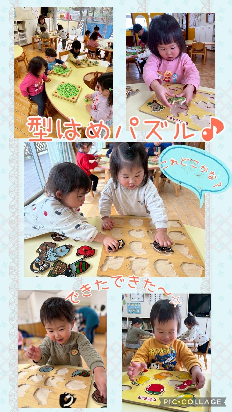 最初は「手伝って〜」と求めていた子も、繰り返すうちに自分で合わせようとする姿が増え、形の違いに気づきながら試行錯誤していました🧐