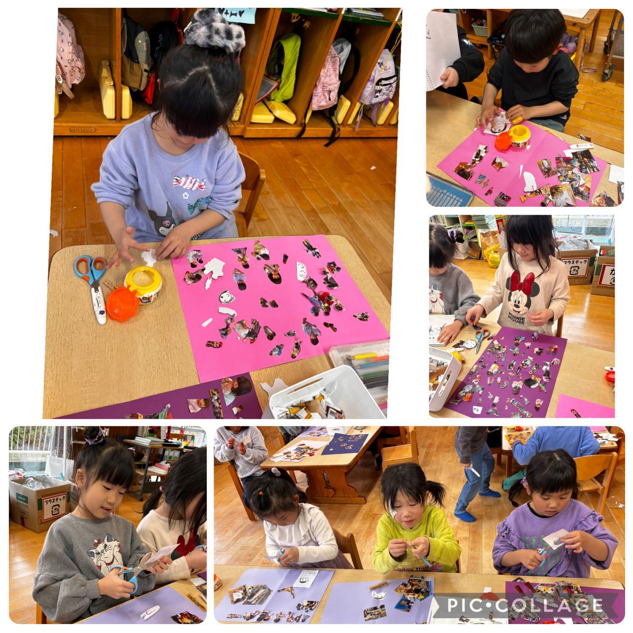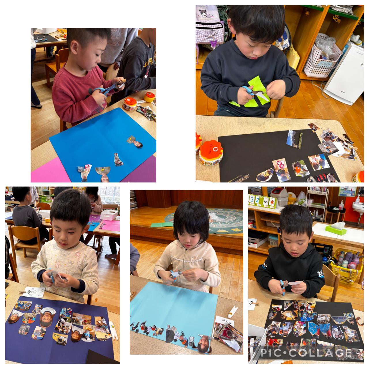 子どもたちもアルバム作りにチャレンジ♪1年間の思い出の写真をハサミでチョキチョキ切って、台紙に貼っていきます。大変だけど、写真を懐かしみながら、こんなことしたなー、あんなんだったなーと言いながらの楽しい作業となりました!!