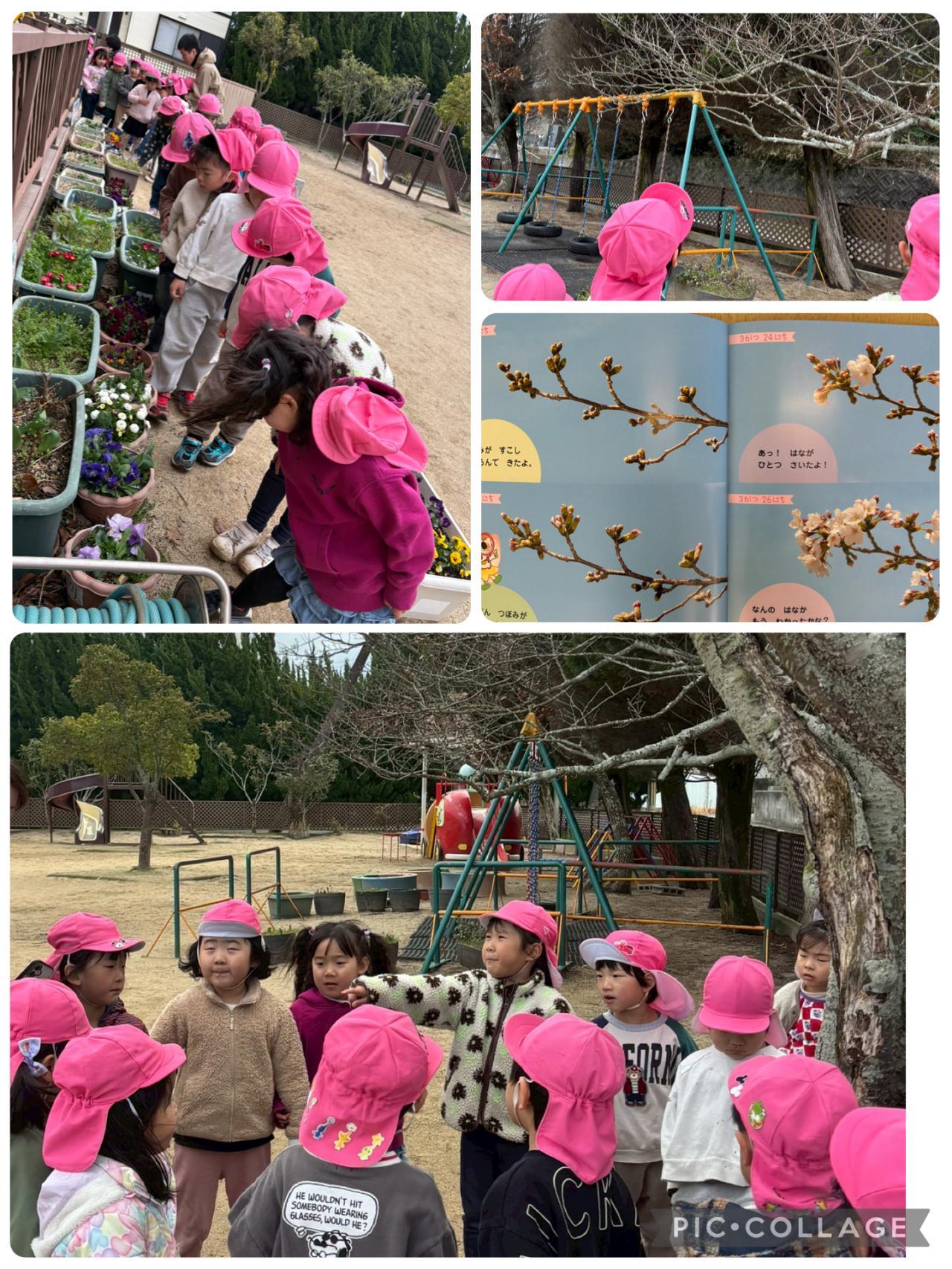 朝、園庭で久しぶりに植木鉢を見てみると、赤いちゅうりっぷの花が咲き始めているのを発見🌷桜の木を見てみると、つぼみも発見!春が近づいてきてますね♪