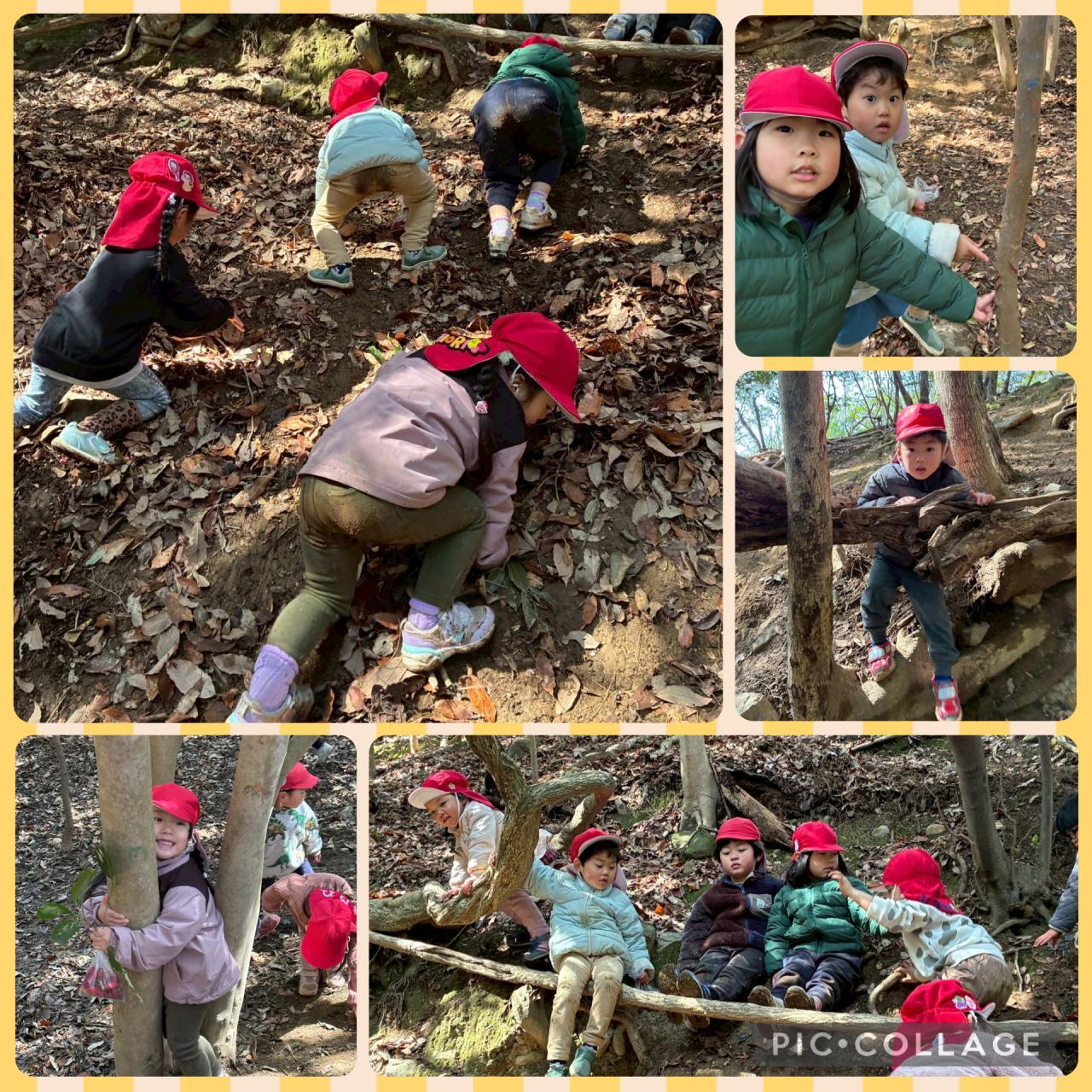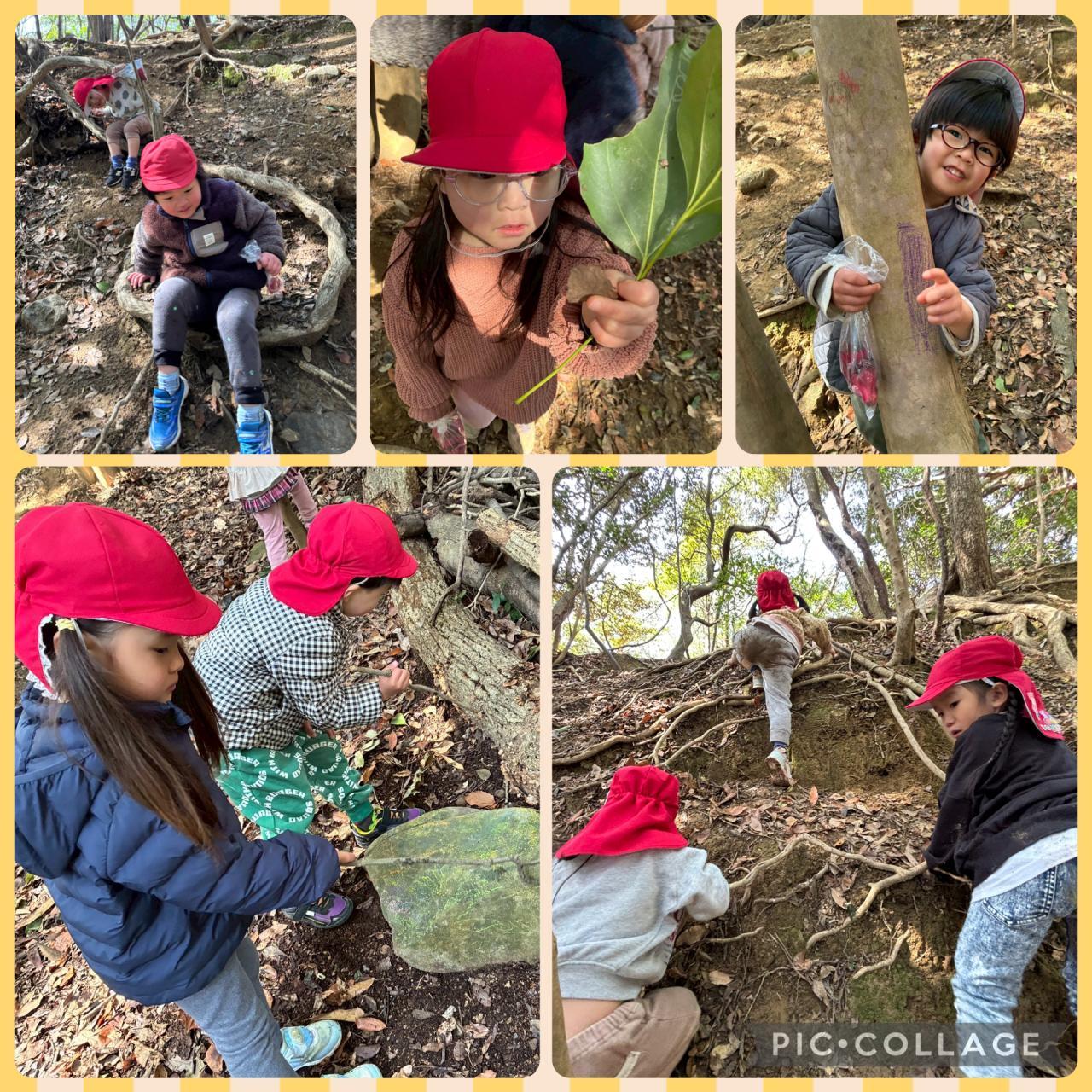 みんなが大好きな斜面滑りをしました。どんぐり山へ行く回数を重ねるごとに、どんどん思い切りがよくなる子どもたち!険しい斜面に挑戦したり、勢いよく斜面を滑ったりして全身を使って遊んでいました🌟