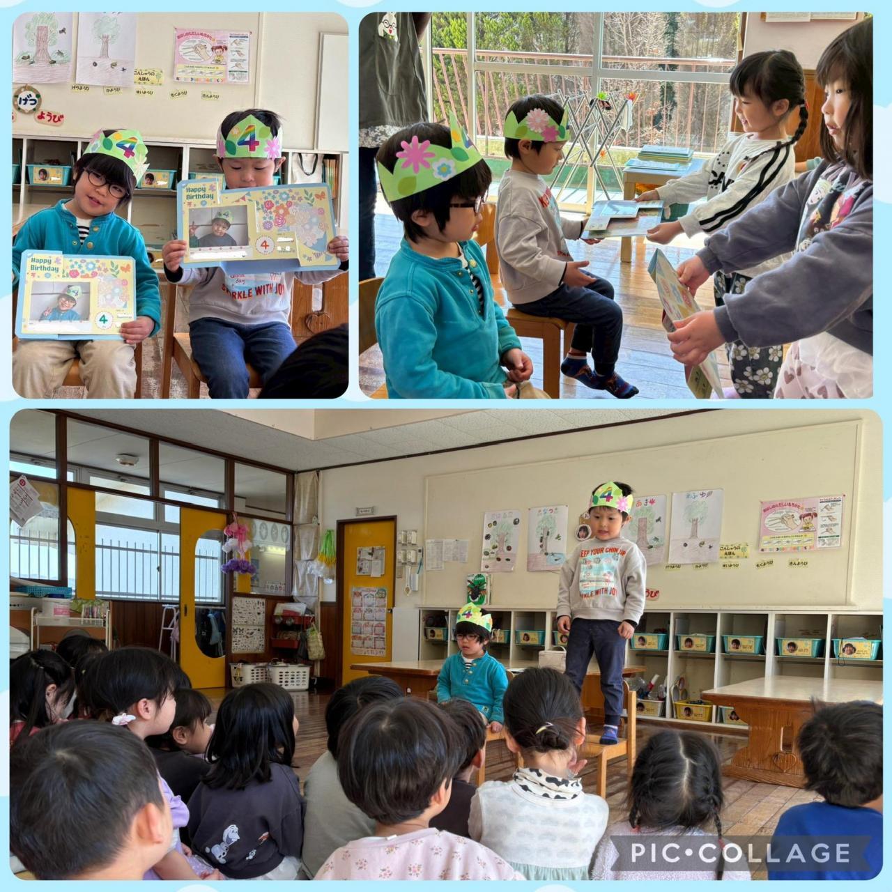 すみれ組では、2人のお友だちがお誕生日でした!元気に自己紹介をし、みんなからのインタビューに上手に答えることができました🌟