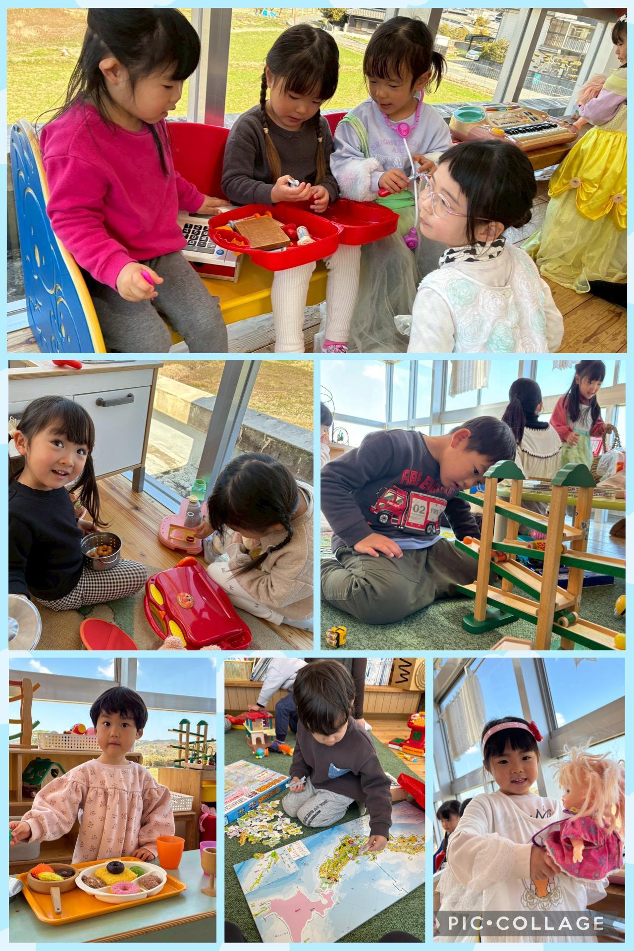 そのあとは、みんなの大好きなサンサンルームへ!病院ごっこやおままごと、パズルなどそれぞれ夢中になって遊んでいました☺︎