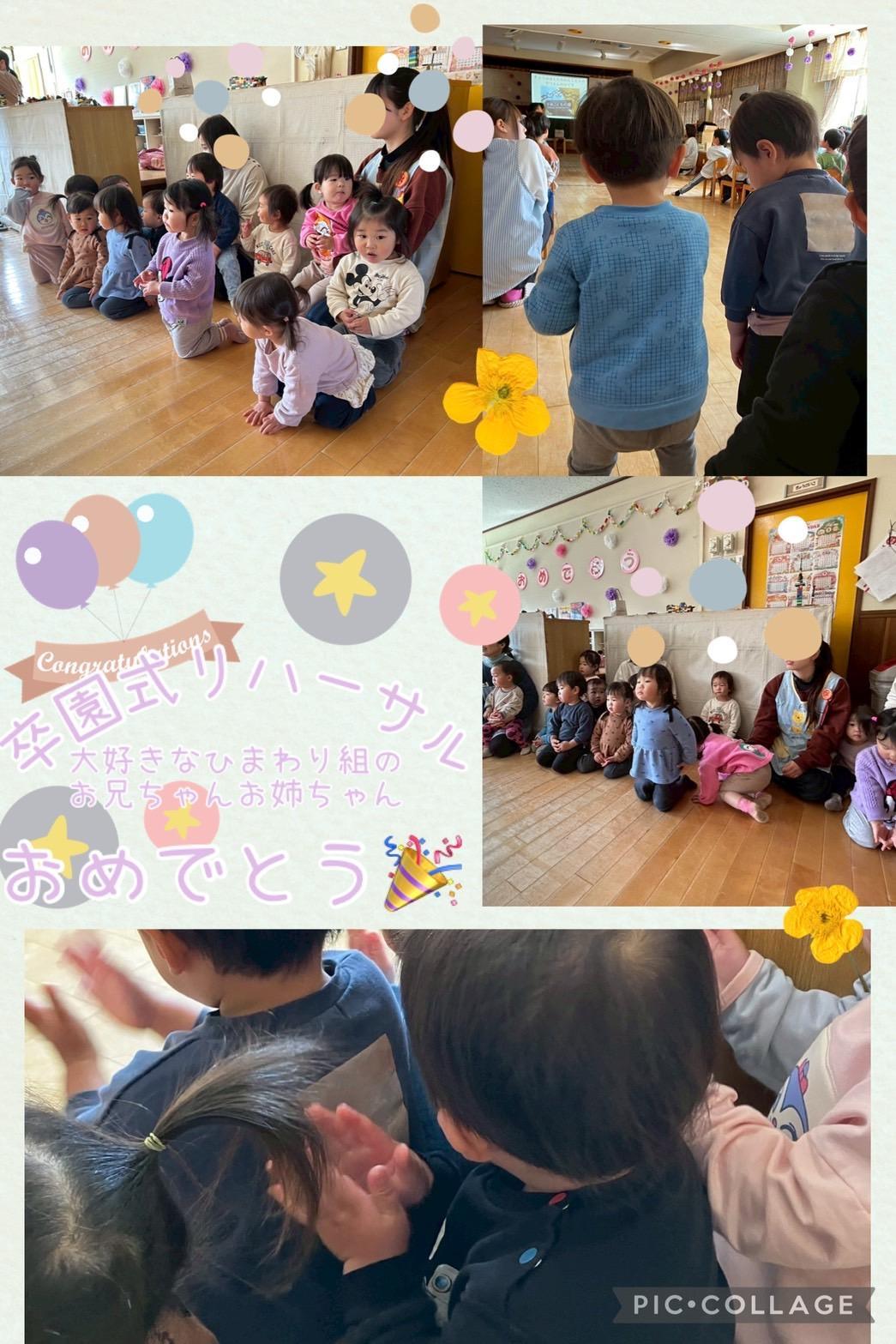 今日は卒園式のリハーサルに参加しました。長い時間でしたが、お兄さんお姉さんの立派な姿を静かに見続けることができましたよ☺︎