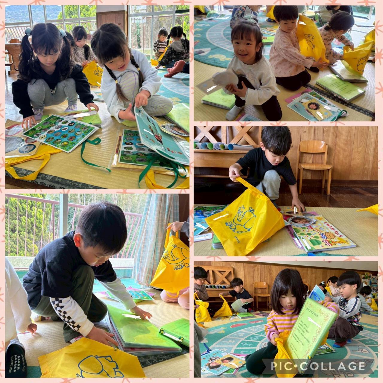 そのあとは、持ち帰るものを自分たちで黄色のカバンに入れました。1年間使用したものを持ち帰っています。ぜひ、子どもたちと一緒に振り返ってみてくださいね!