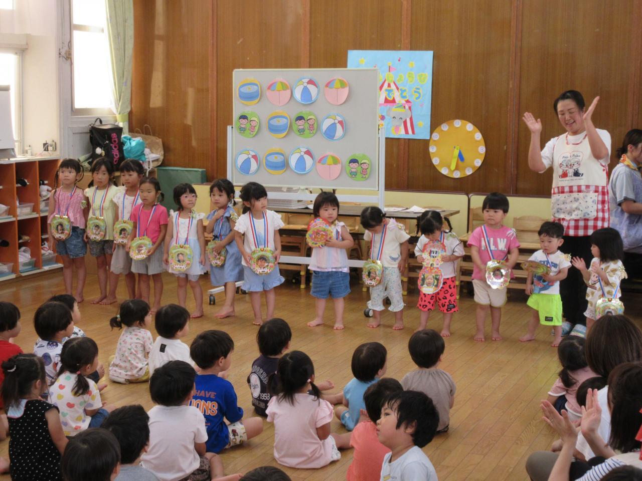13人のお友だちが名前を呼ばれ、大きな返事をしてみんなの前に立ち、お祝いしてもらいました。