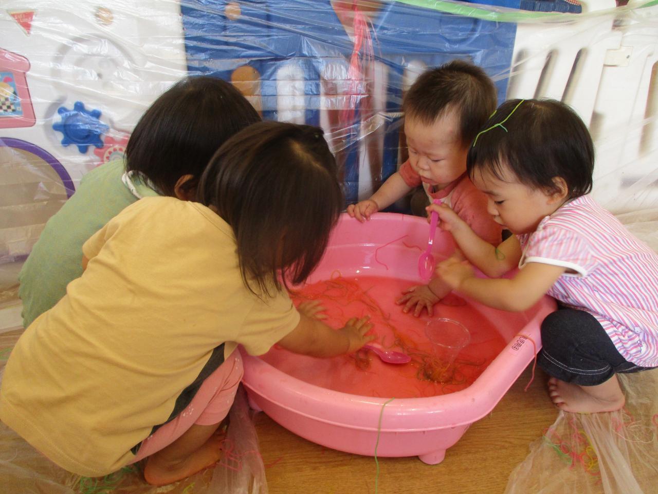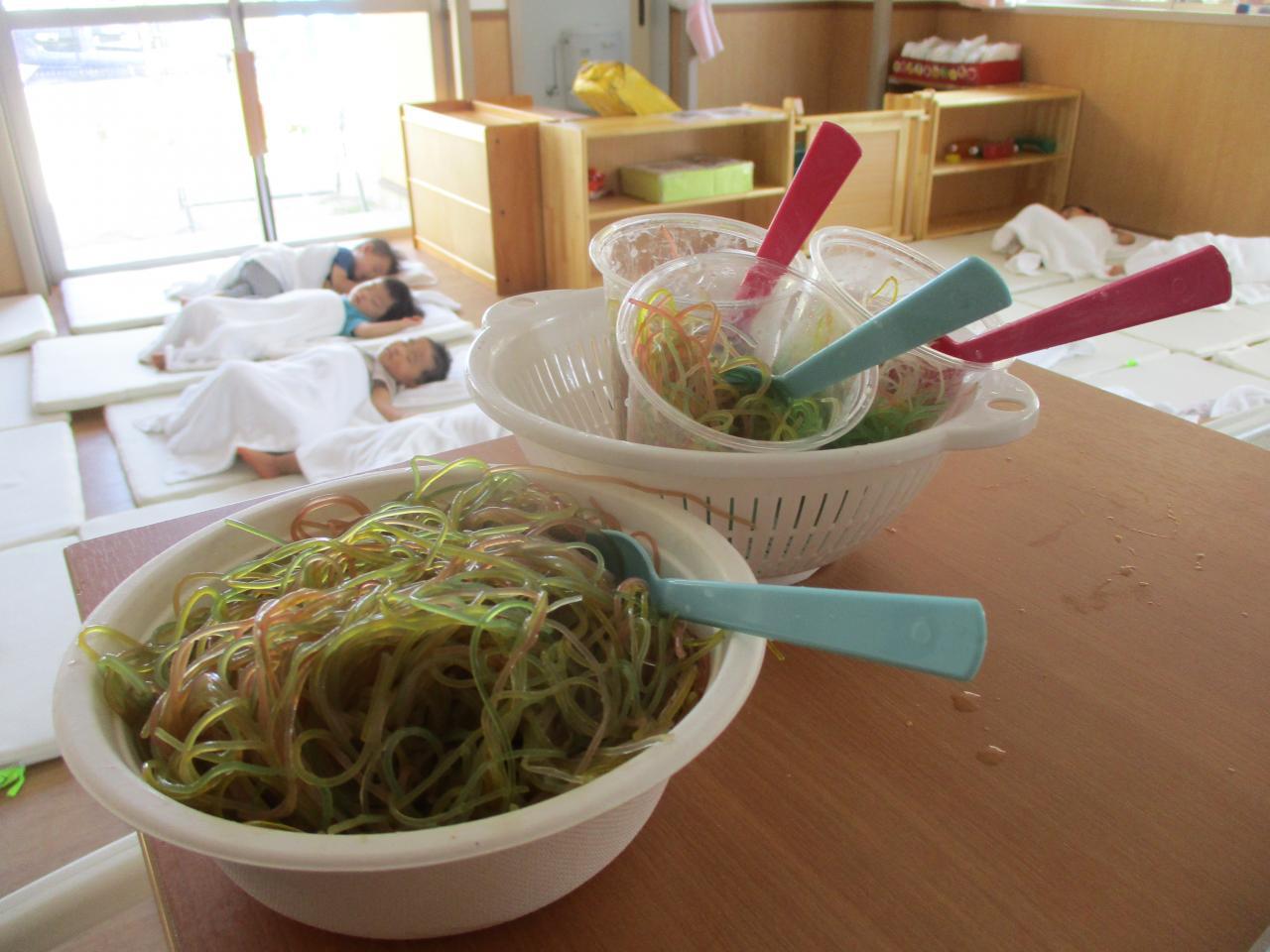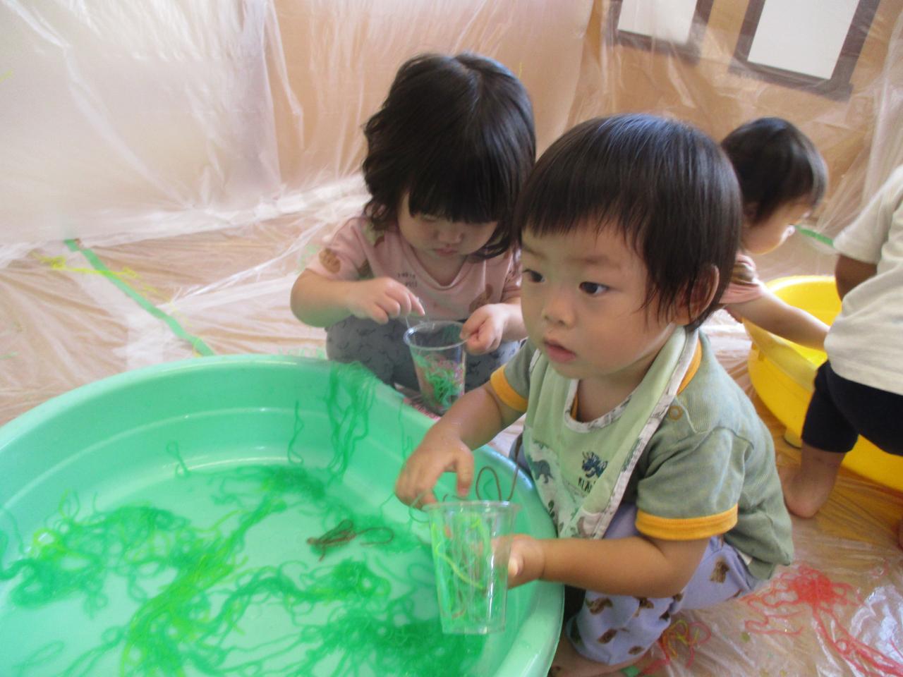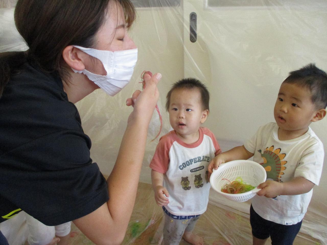 色つき春雨を出した瞬間にみんな「なになに?」と興味津々でした!