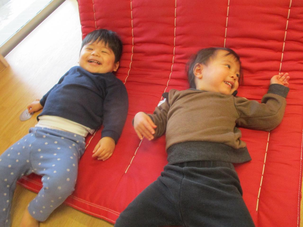 頑張る一方、たまには休憩、甘えたくなるのも1歳児、2歳児の特徴です。手伝ったり、子どもの気持ちを受け入れ、たくさん甘えて満たされた後に「またやってみよう」とする意欲につながります。