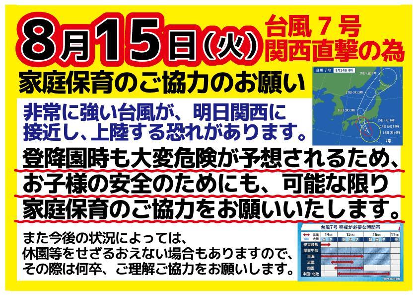 (※尚、明日登園予定のお子様で家庭保育のご協力をいただける場合は園までご連絡ください。)