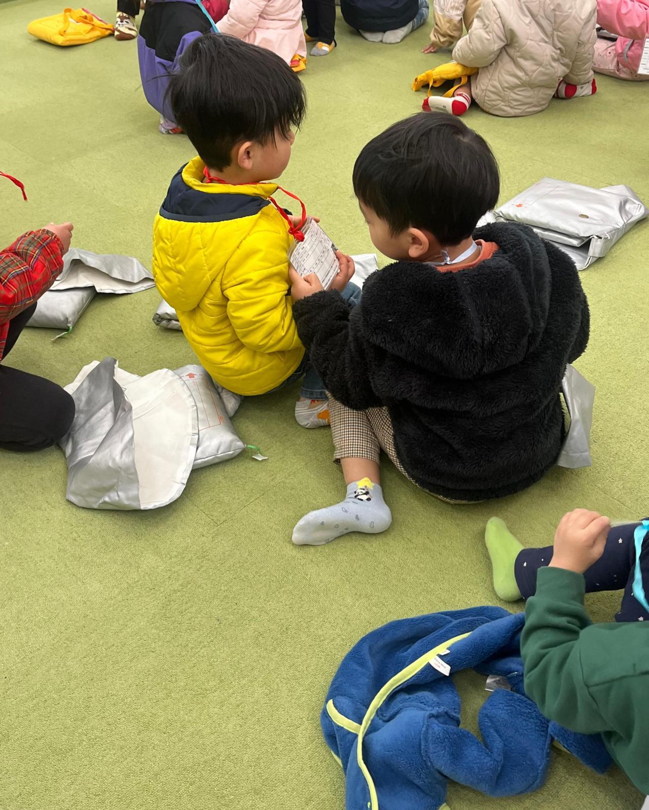 最後には引き渡し訓練も行い、保育教諭から個人カードをもらい首にかけるという流れも知ることができました。