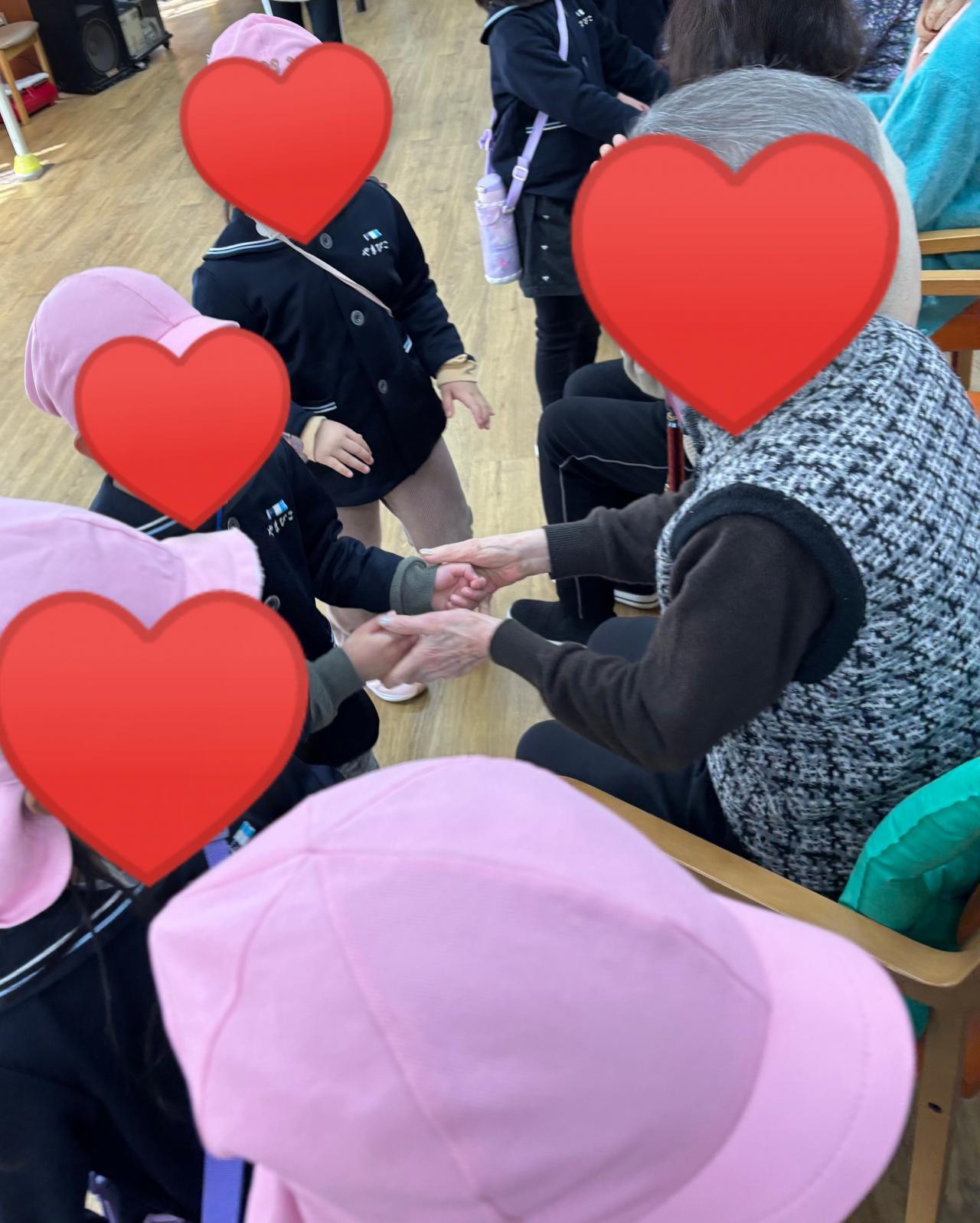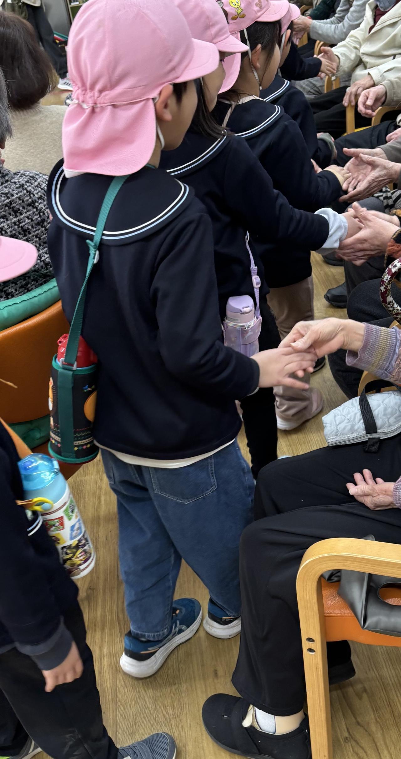 サニーライフ白川を訪問し、おじいちゃんおばあちゃん達と一緒にふれあい遊びをしたり歌を披露したりしました。