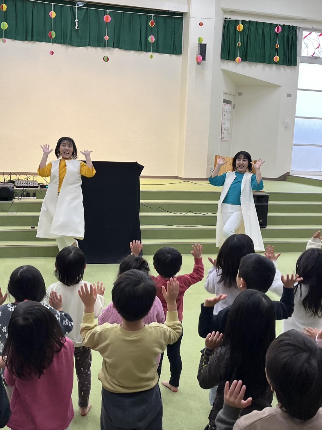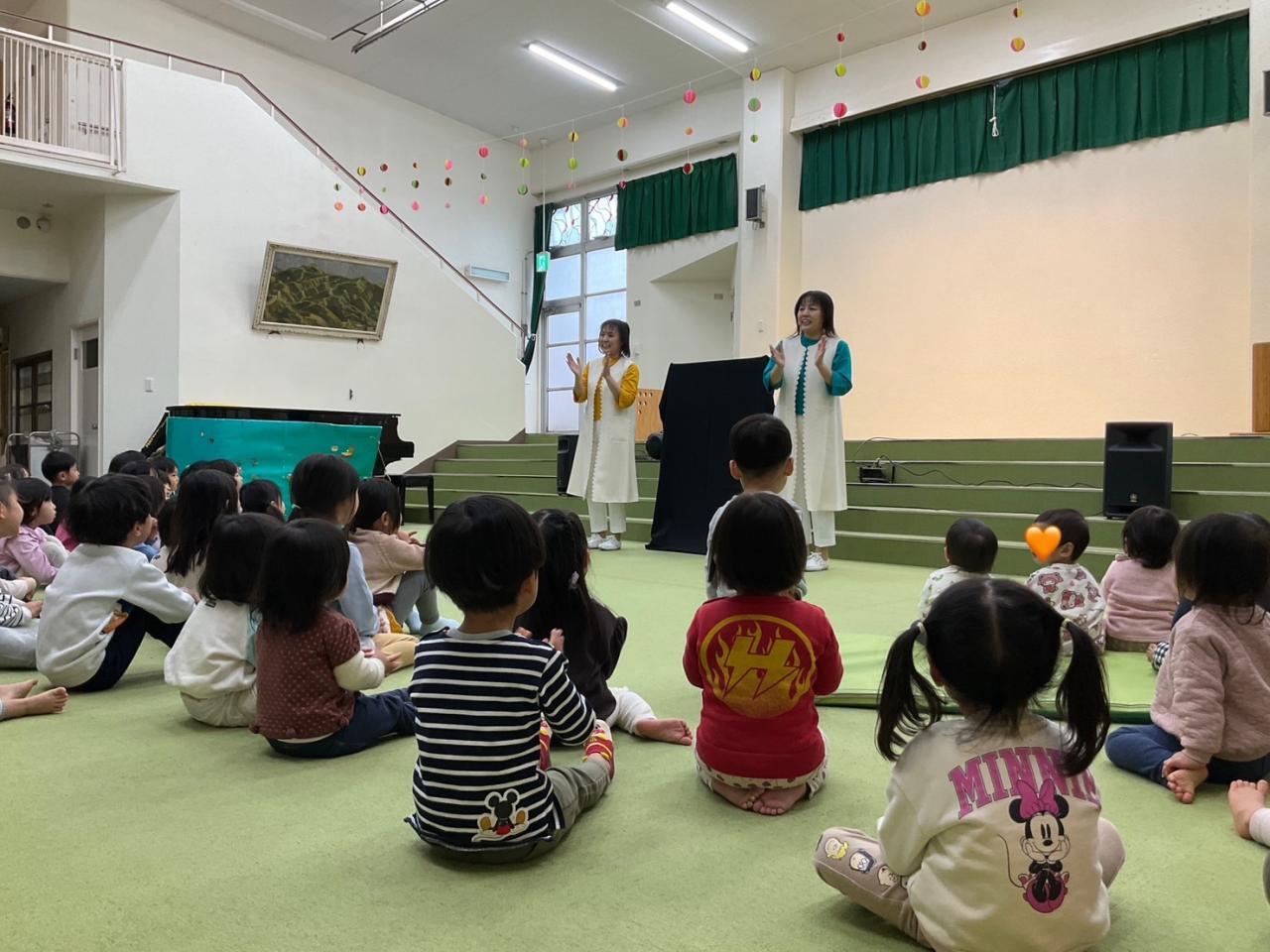 ♪うれしいひなまつりのうたから始まり、みんなが発表会で歌ったうたや、手遊びうたなど盛りだくさんでした。