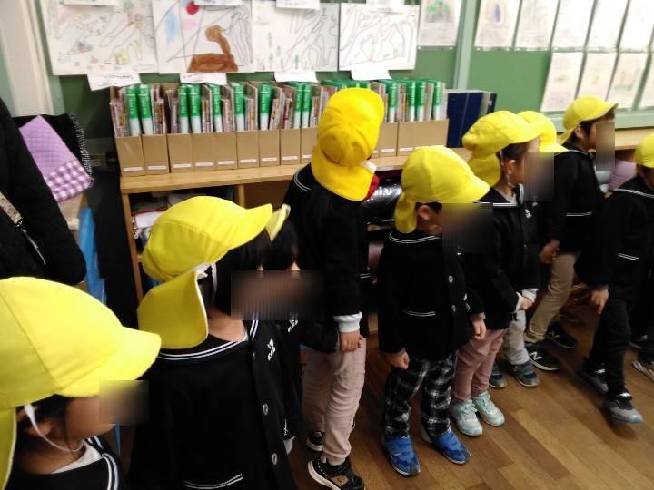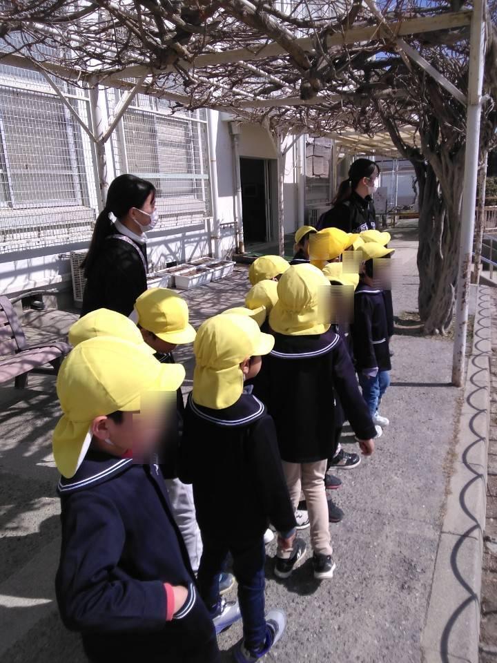 チャイムが鳴る前に自分たちで時計を見て教室に戻っていることに驚いていました。授業中、静かに話を聞いている小学生達を見て子どもたちも静かに見学し、「ノートと教科書は机の中に片付けるんだね。ランドセルは後ろのロッカーに入れてる!」と色々なことに気がつき知ることができました。