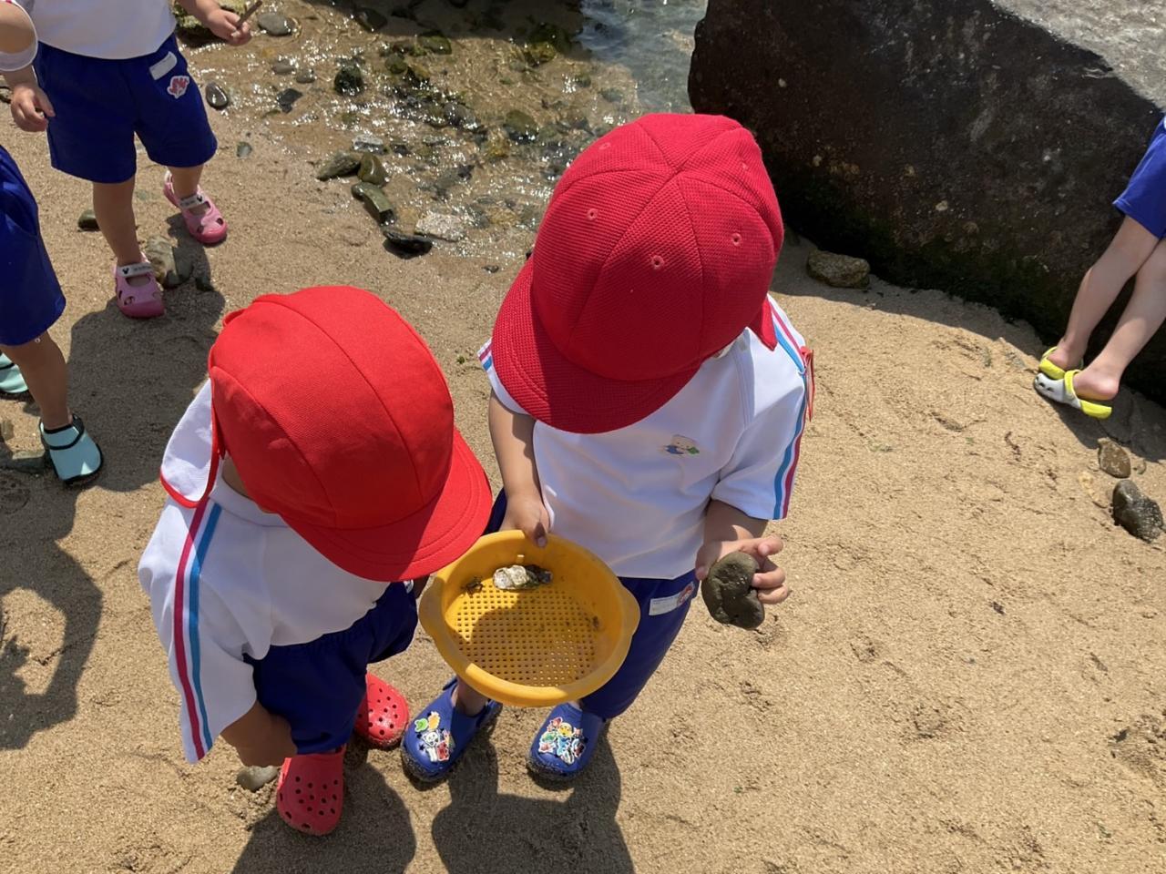他には「ヤドカリでてきた!」や「こんなに大きいわかめ見つけたよ!つるつる〜」と海の物を見つけることができました。