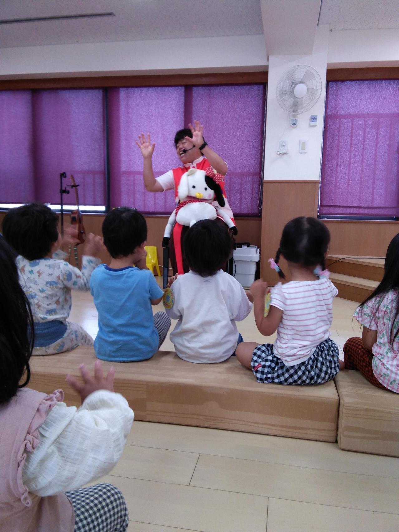 コンサートが始まると、「こちょこちょでんしゃ 」や「はずかしがりやのダンゴムシ 」など子ども達はかばうまさんの世界に入り、ノリノリで身体を動かし、笑いの絶えない時間になりました。