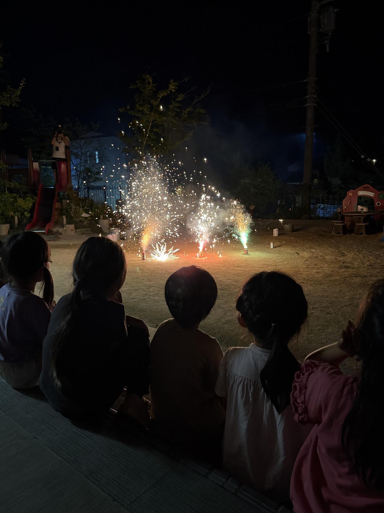 お楽しみの花火では「綺麗だね!」「すごーい!」と、とてもいい笑顔で花火を見ていました。シャワーを浴びて就寝です。おやすみなさい。