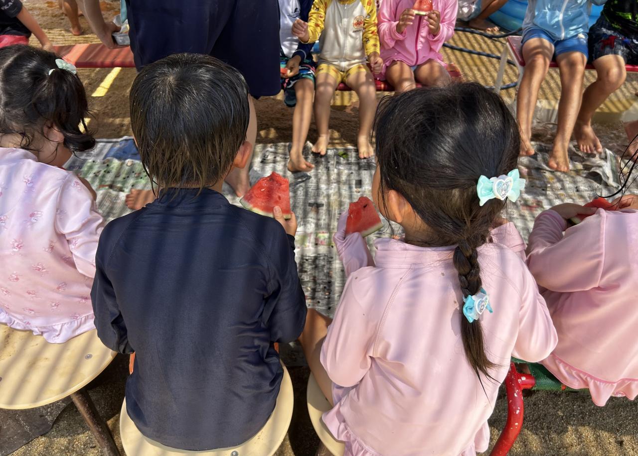 みんなで力を合わせて割ったすいかは、格別に美味しくて「おいしい!」「おかわりください!」と満足そうに食べていました。