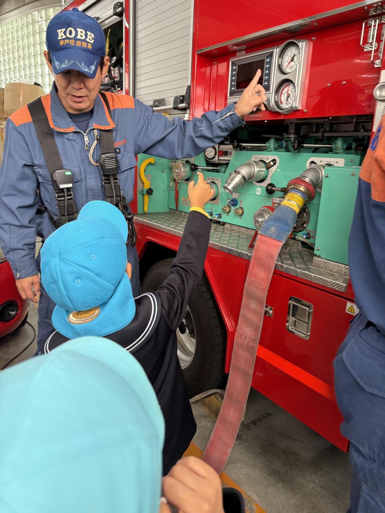 消防車を指差しして「これは何?」と消防士さんに質問をすると「水圧を測るメーターだよ」と教えてもらいました。