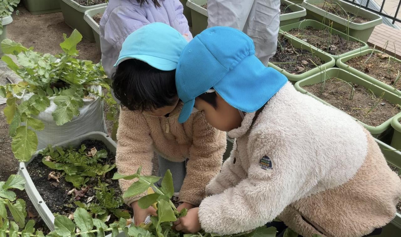 大根を抜いている様子を見て「やってみたい!」とゆりぐみの子ども達。