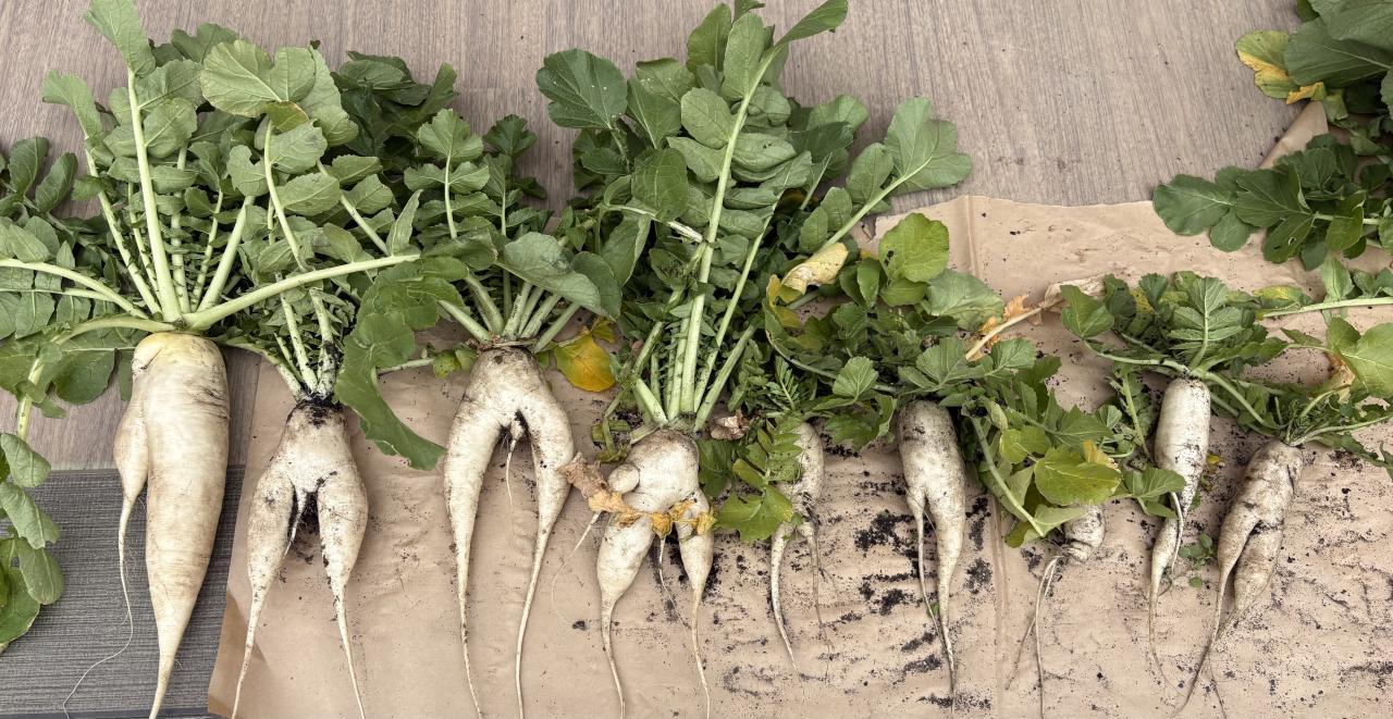 みんなで世話をして、出来た大根を見て大喜びでした。