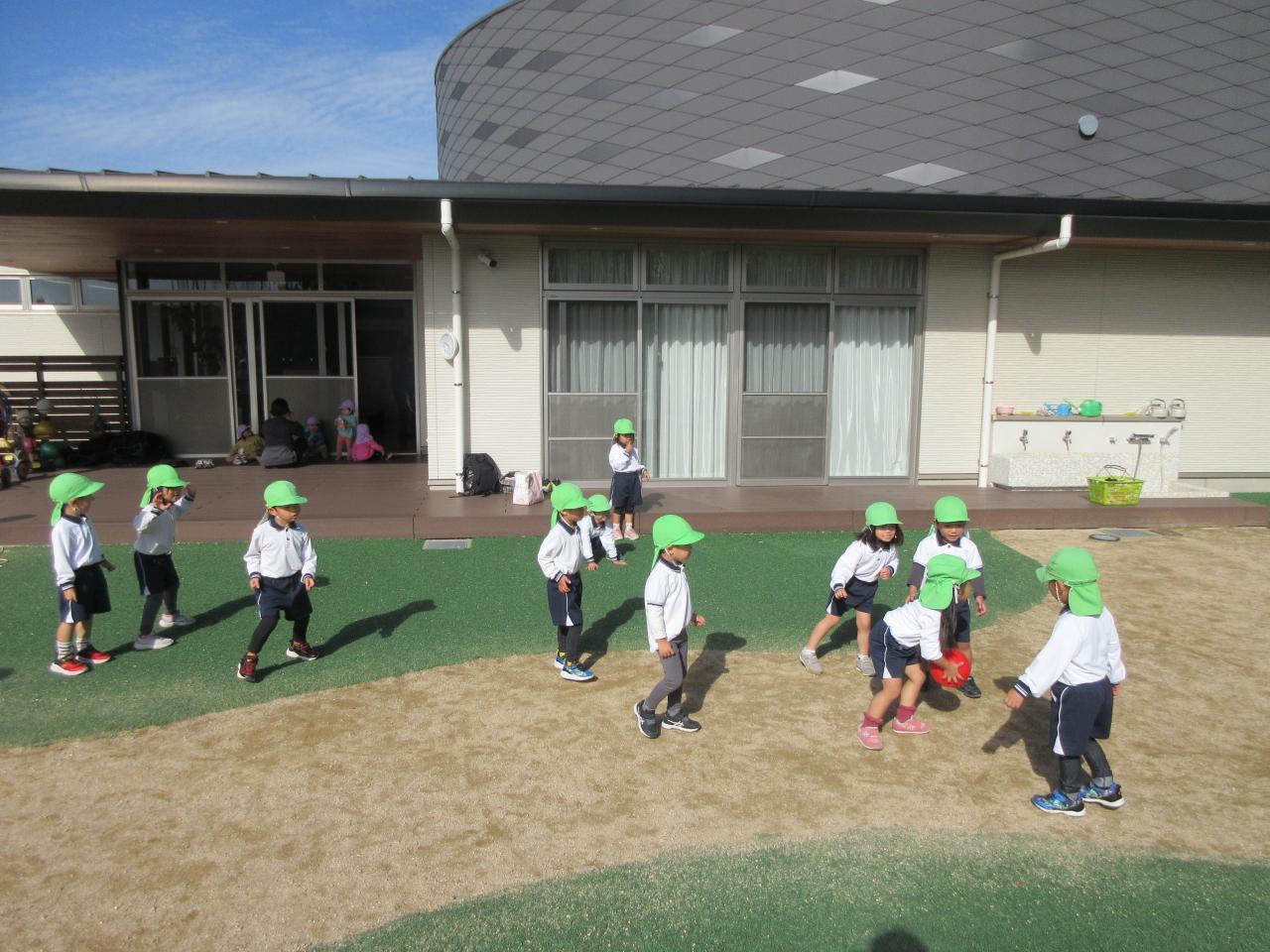 縄跳び練習をしました。自分で挑戦したい技を選び、縄が引っかかっても何度も何度も練習を続けています。友だち同士で「次はこの技!」「一緒に練習しよう!」と声を掛け合いながら一生懸命に取り組みました。技ができたときは嬉しそうに「出来たよ!」と報告しています。チームドッジボールでは2チームに分かれて、外野と内野で協力してゲームに参加しました。