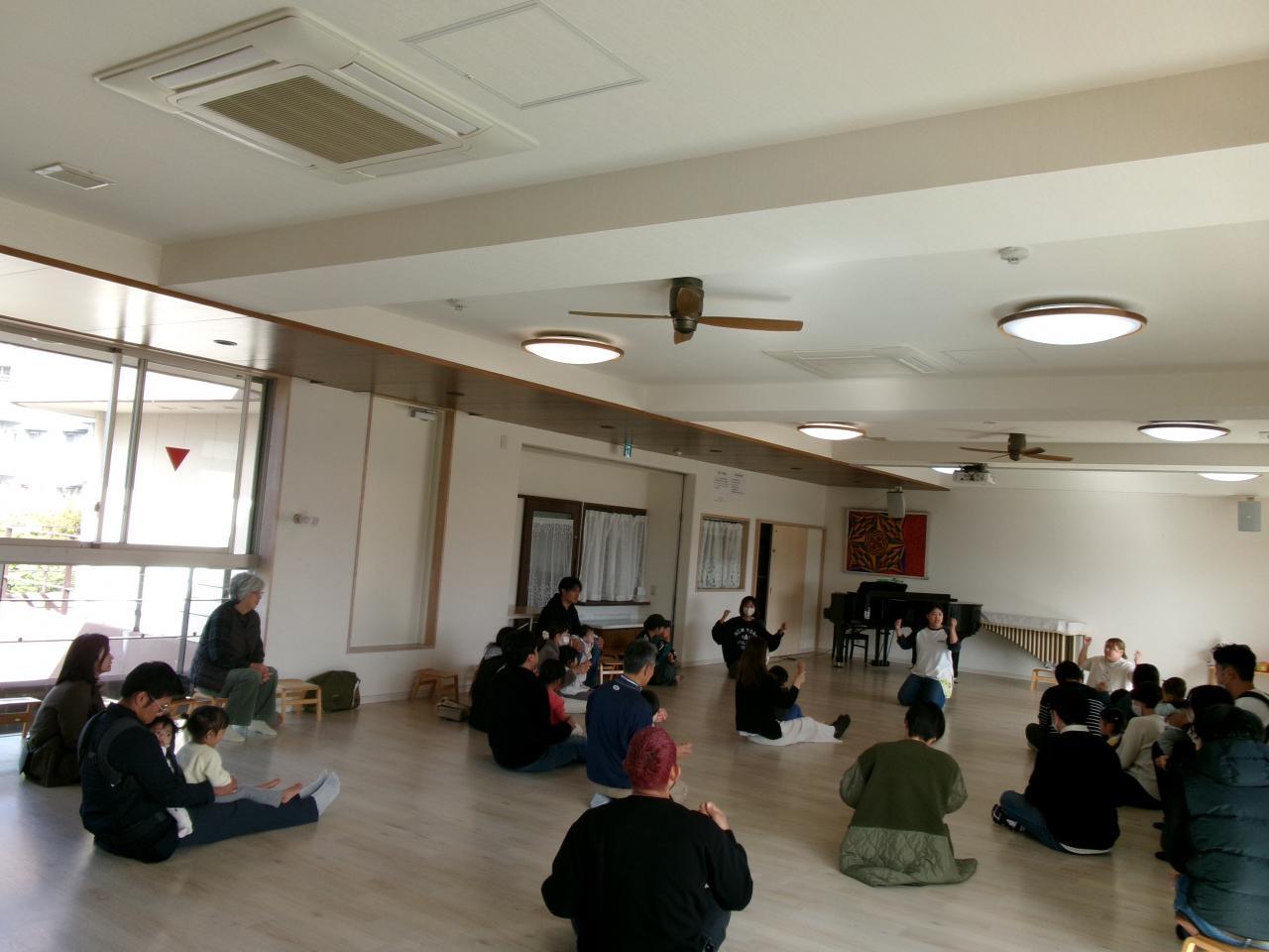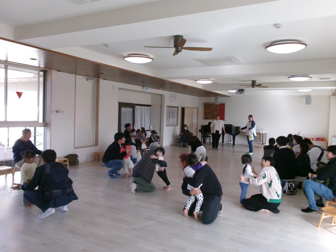 最後には触れ合い体操の「いただきマックス」「ばすにのって」をしました。保護者の方と一緒に音楽に合わせて体を伸び伸びと動かして楽しみました。