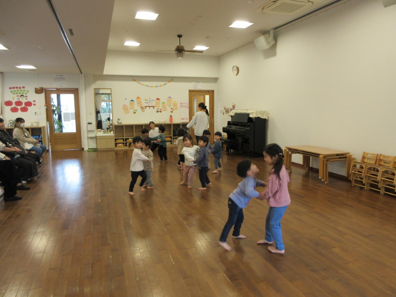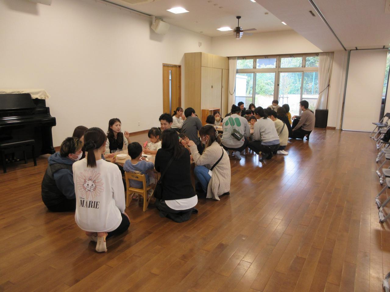 エビカニクスの体操をしてから保護者の方と「ぐるぐる洗濯機」の触れ合い遊びをしました。一緒に体を動かすことができてとても嬉しそうでした。